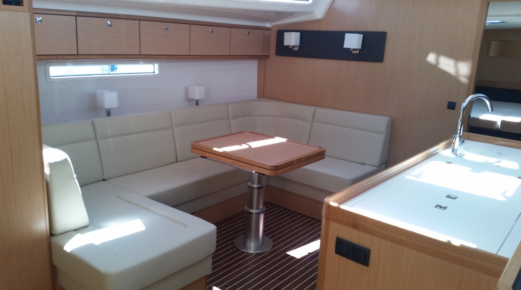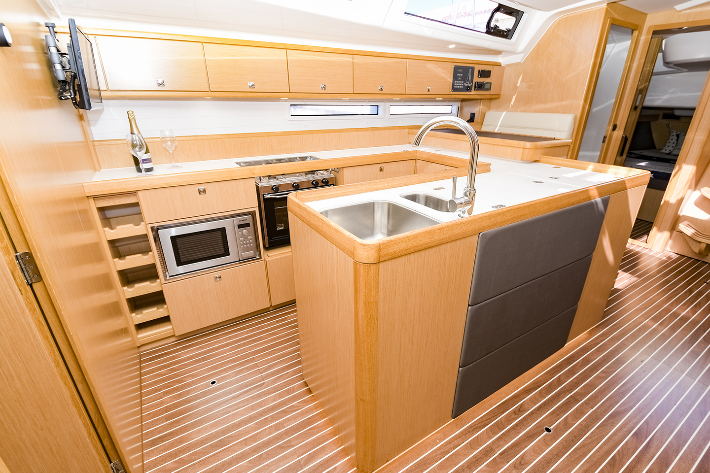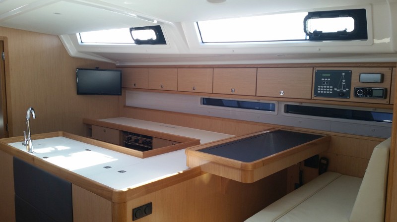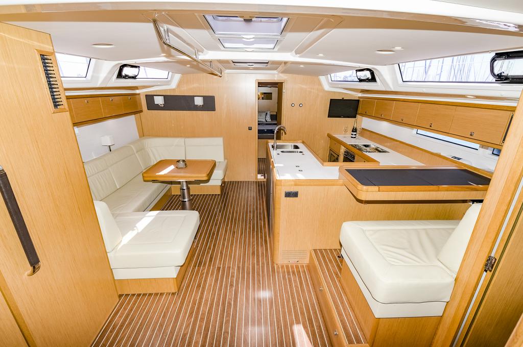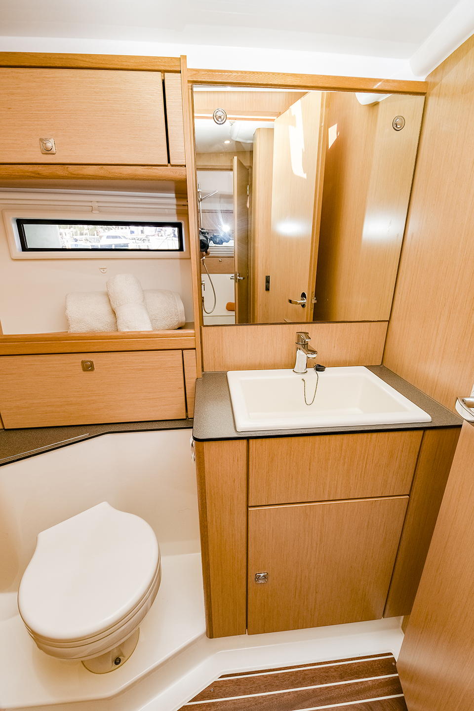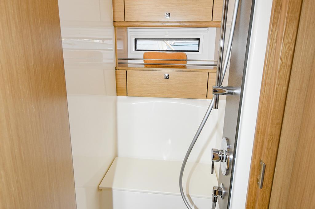 | Outside | Badeleiter, Badeplattform, Biminitop, Cockpitdusche, Cockpitlautsprecher, Cockpitpolster, Cockpittisch, Deckpolster, elektr. Ankerwinsch, Selbstholende Winschen, Sprayhood, Teakdeck |
