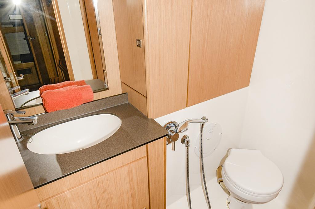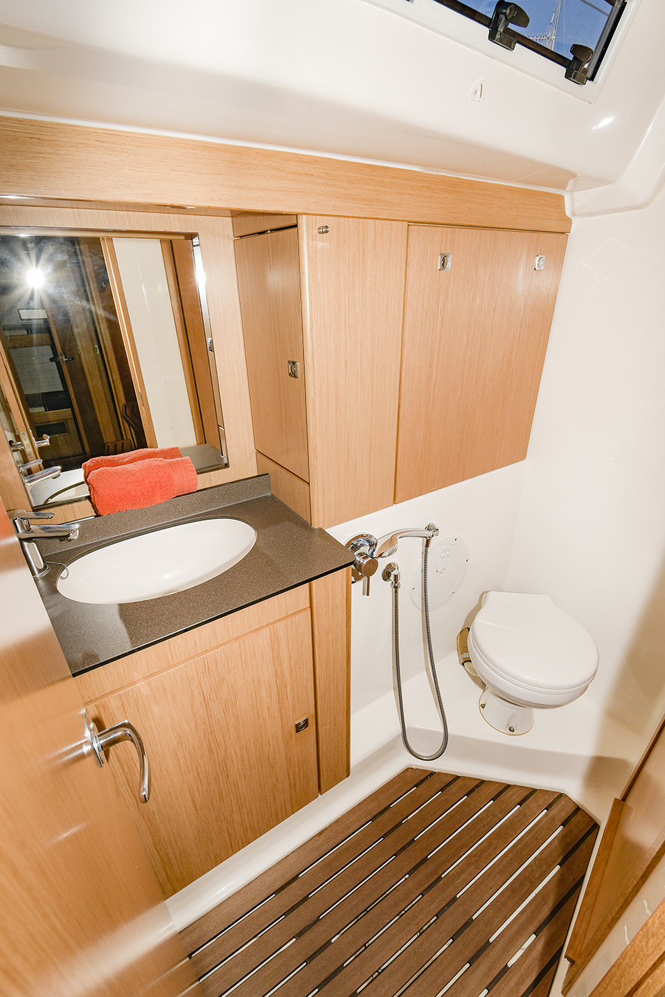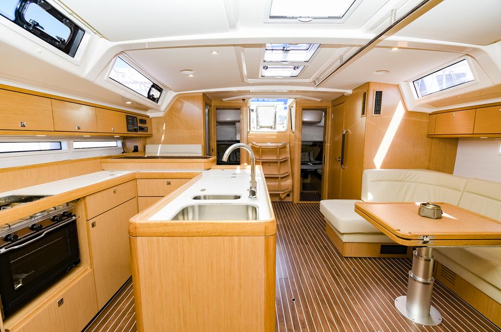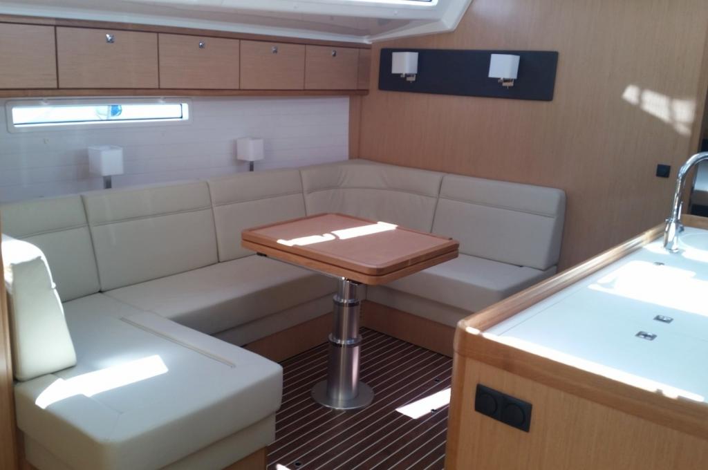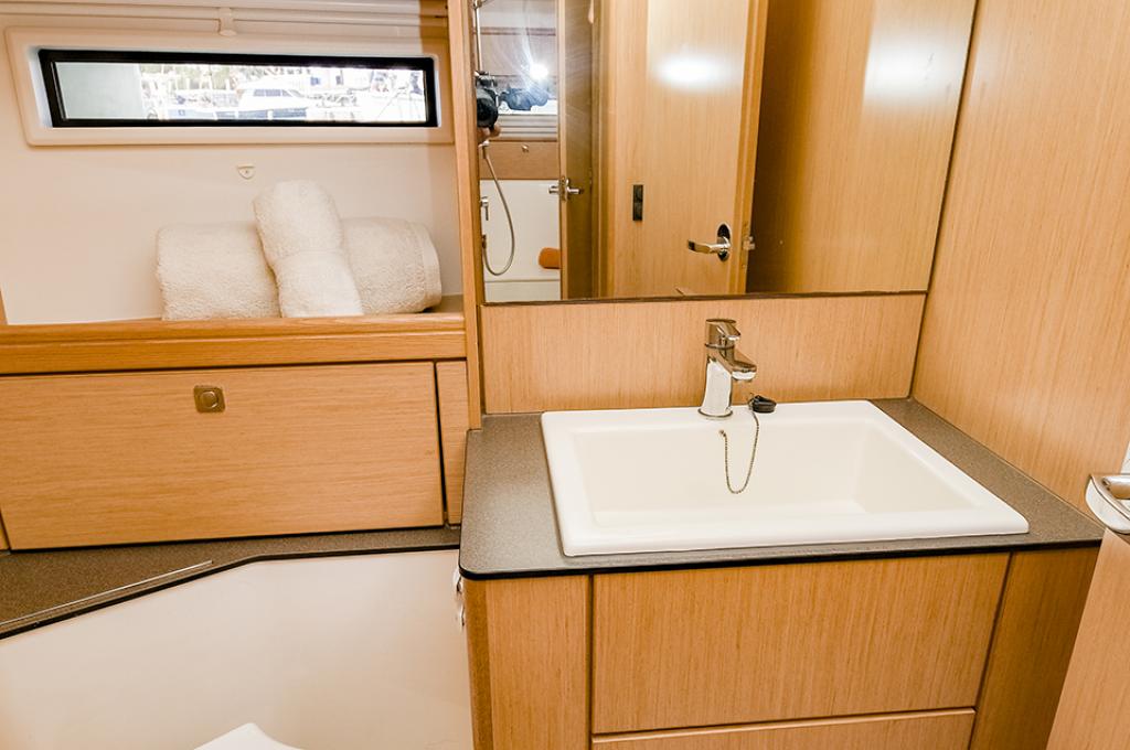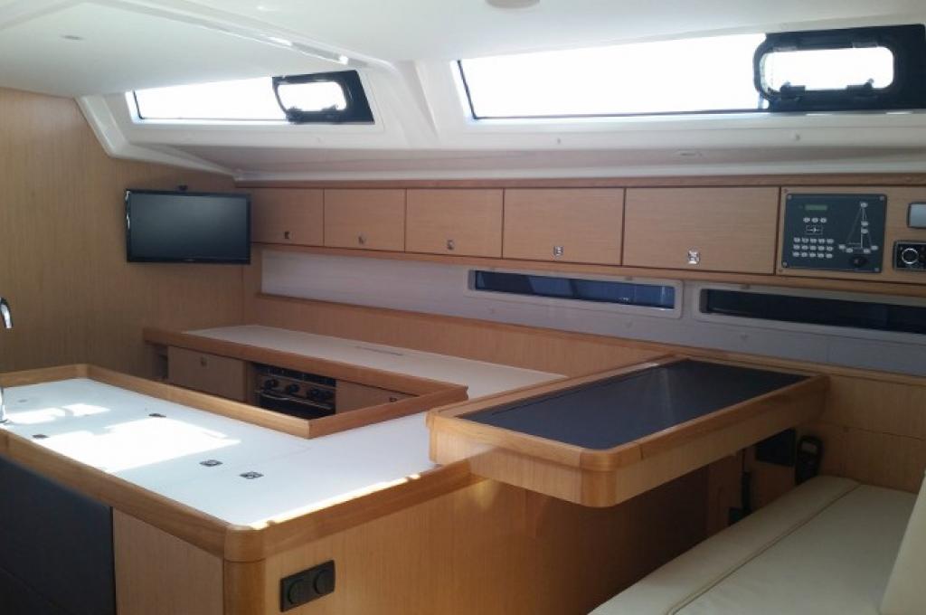 | Outside | Badeleiter, Badeplattform, Biminitop, Cockpitdusche, Cockpitlautsprecher, Cockpitpolster, Cockpittisch, Deckpolster, elektr. Ankerwinsch, Selbstholende Winschen, Sprayhood, Teakdeck |