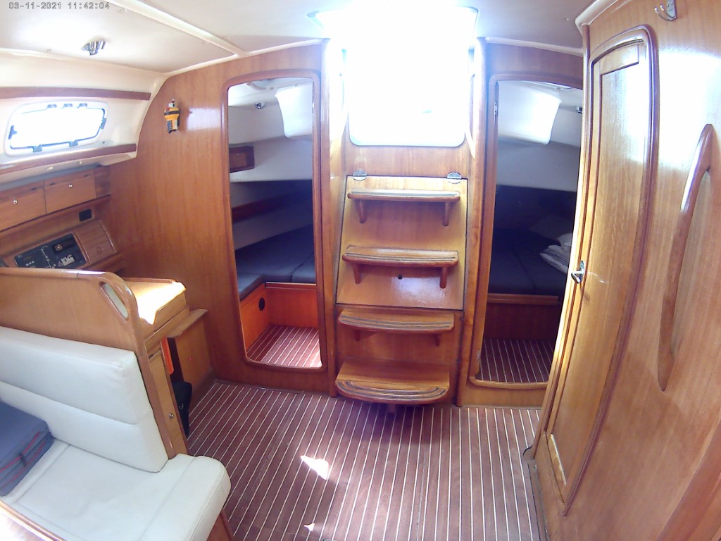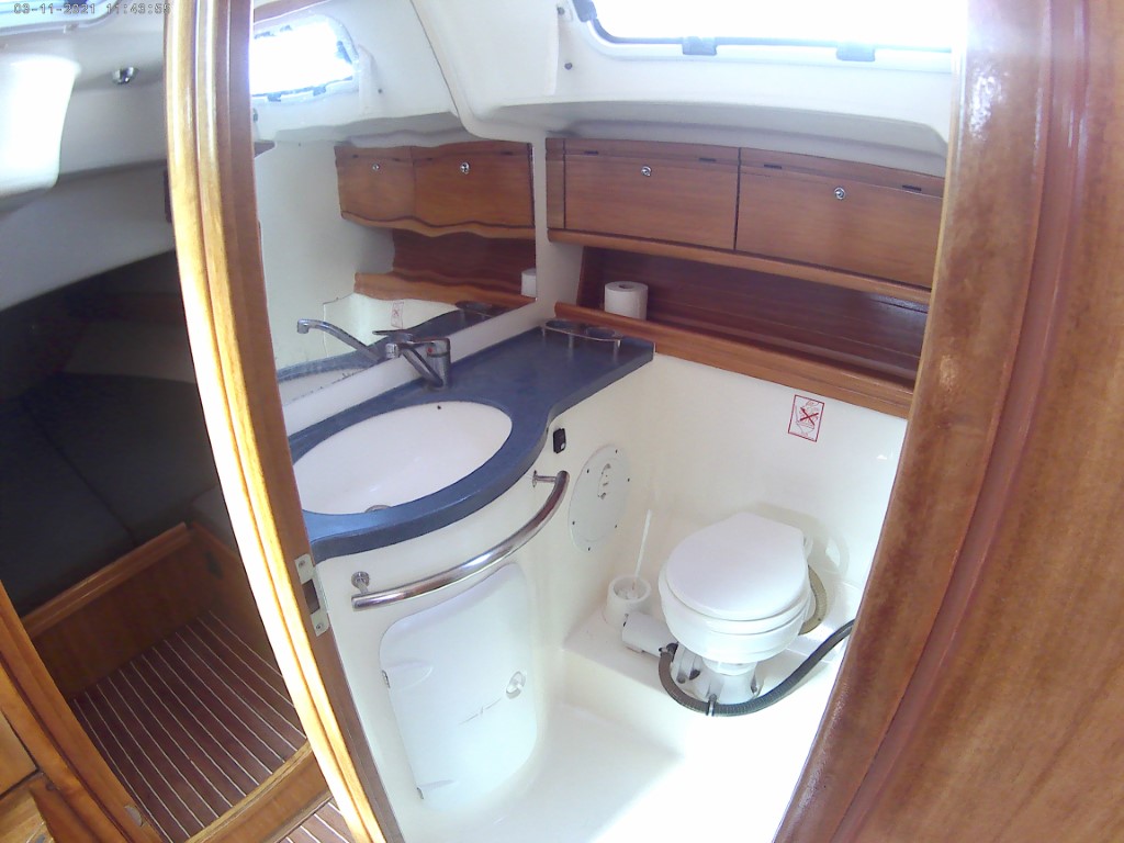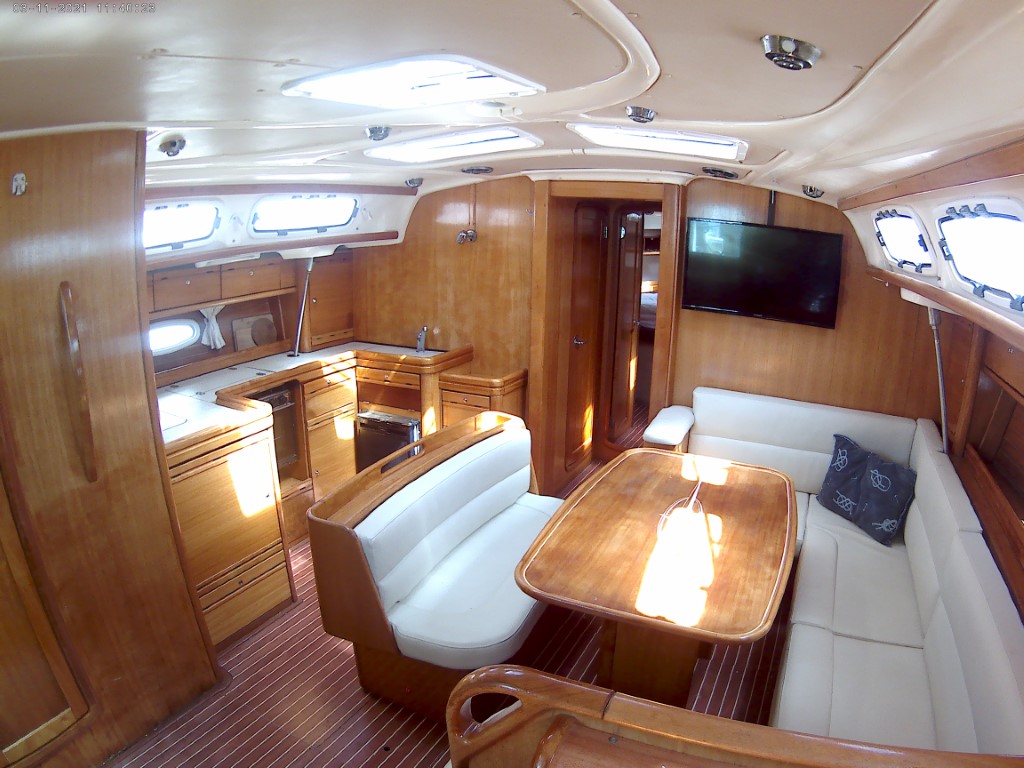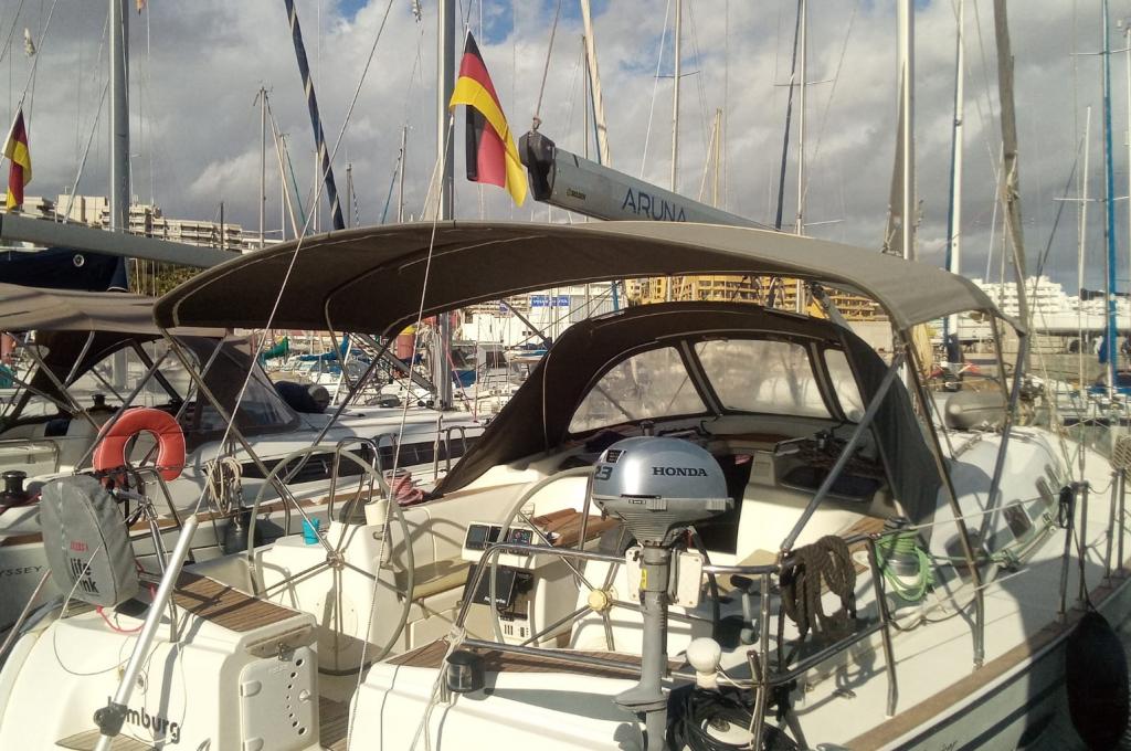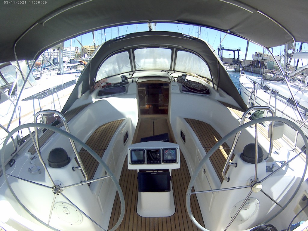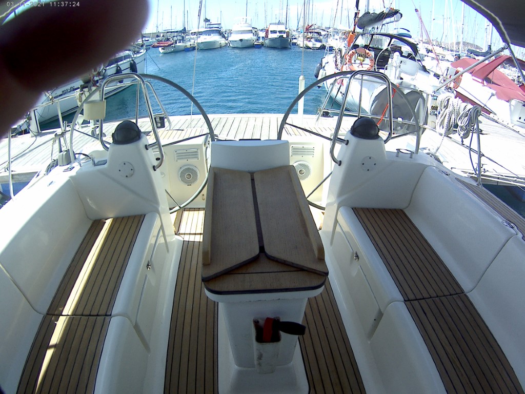 | Outside | Anker mit Kette, Badeleiter, Biminitop, Cockpitdusche, Cockpitlautsprecher, Cockpittisch, elektr. Ankerwinsch, Fender, Festmacherleinen, Solaranlage, Sprayhood, Teak im Cockpit, Wasserschlauch, Windex |