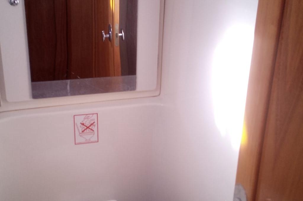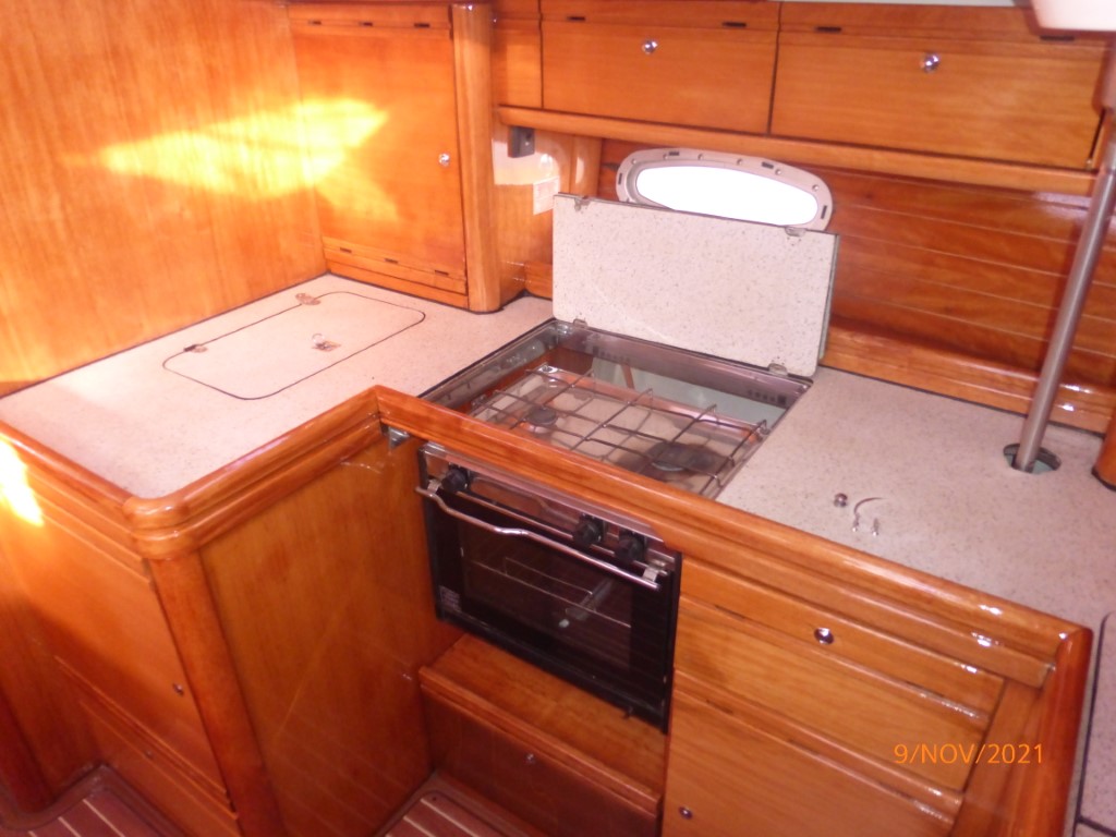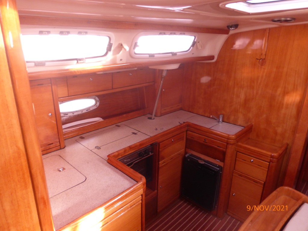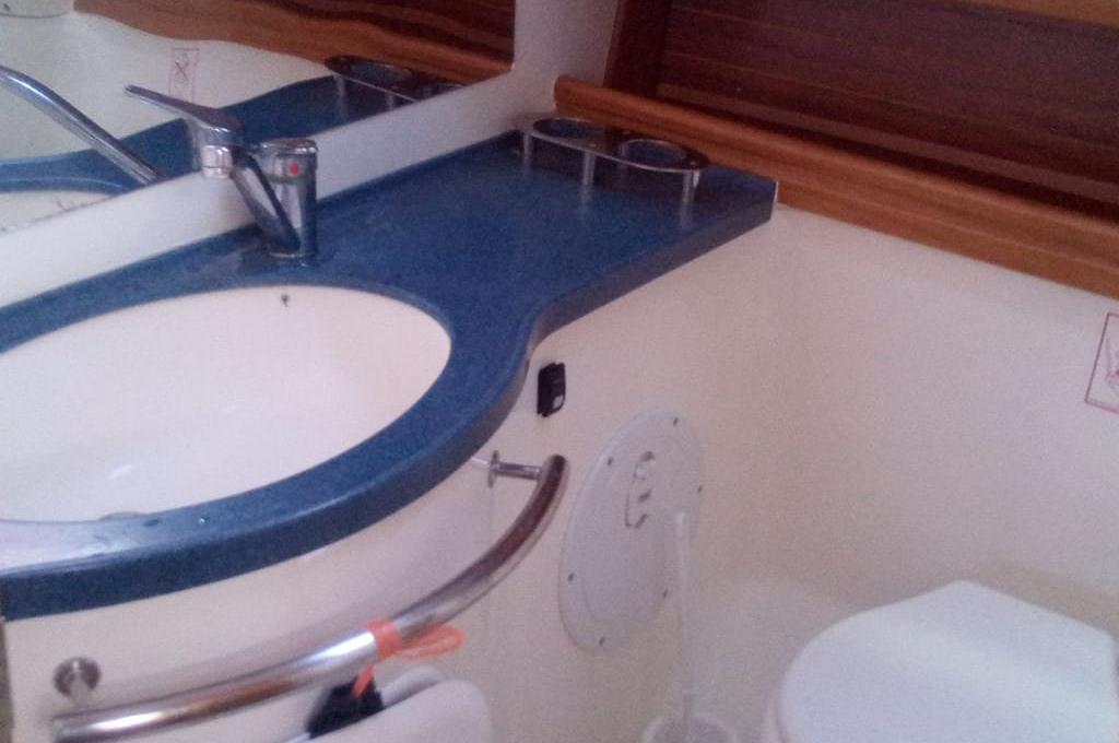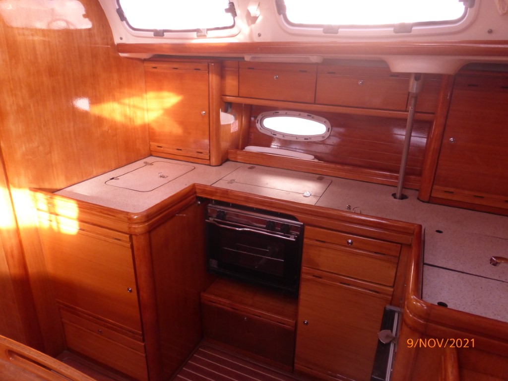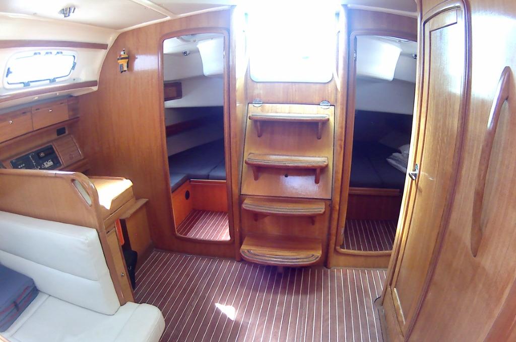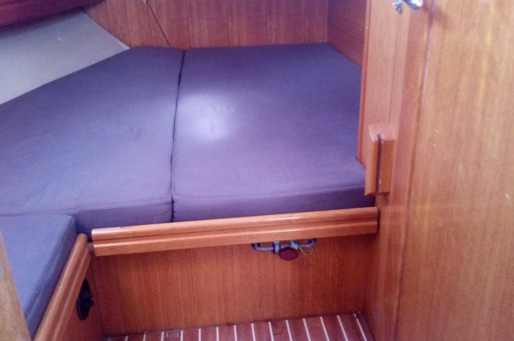 | Outside | Anker mit Kette, Badeleiter, Biminitop, Cockpitdusche, Cockpitlautsprecher, Cockpittisch, elektr. Ankerwinsch, Fender, Festmacherleinen, Solaranlage, Sprayhood, Teak im Cockpit, Wasserschlauch, Windex |