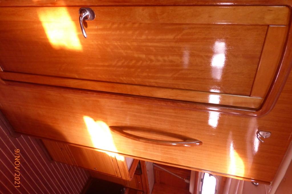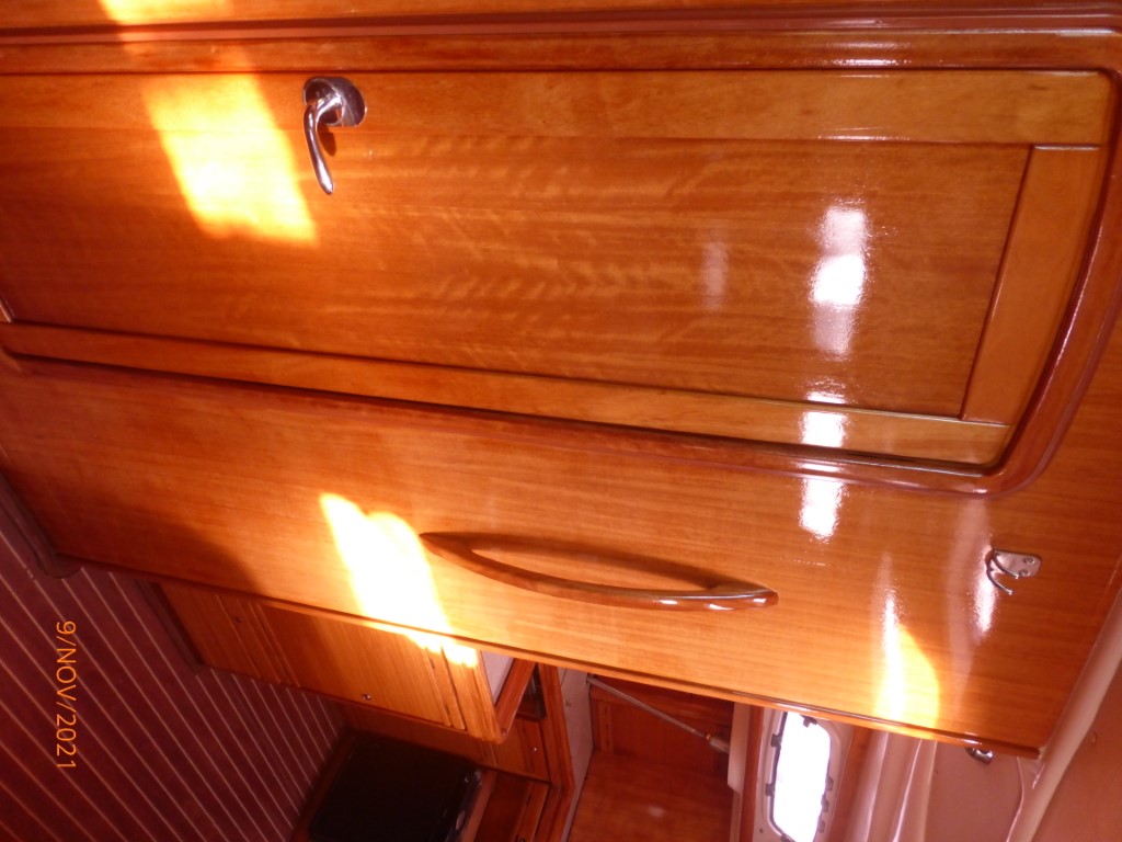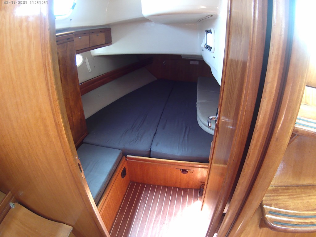 | Navigation | Barometer, elektr. Seekarten, Fernglas, GPS mit Kartenplotter im Cockpit, Hafenhandbücher, Handpeilkompass, Kompass, Seekarten, Tridata (Log, Echolot, Windm.), Windmesser |
