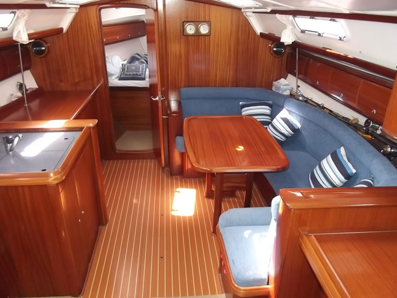 | Outside | Badeleiter, Bootshaken, Cockpitdusche, Cockpitlautsprecher, Cockpittisch, elektr. Ankerwinsch, Festmacherleinen, Kunststoff-Eimer (Pütz), Schnorchelausrüstung, Sonnensegel, Sprayhood, Teak im Cockpit, Wasserschlauch, Winschen |