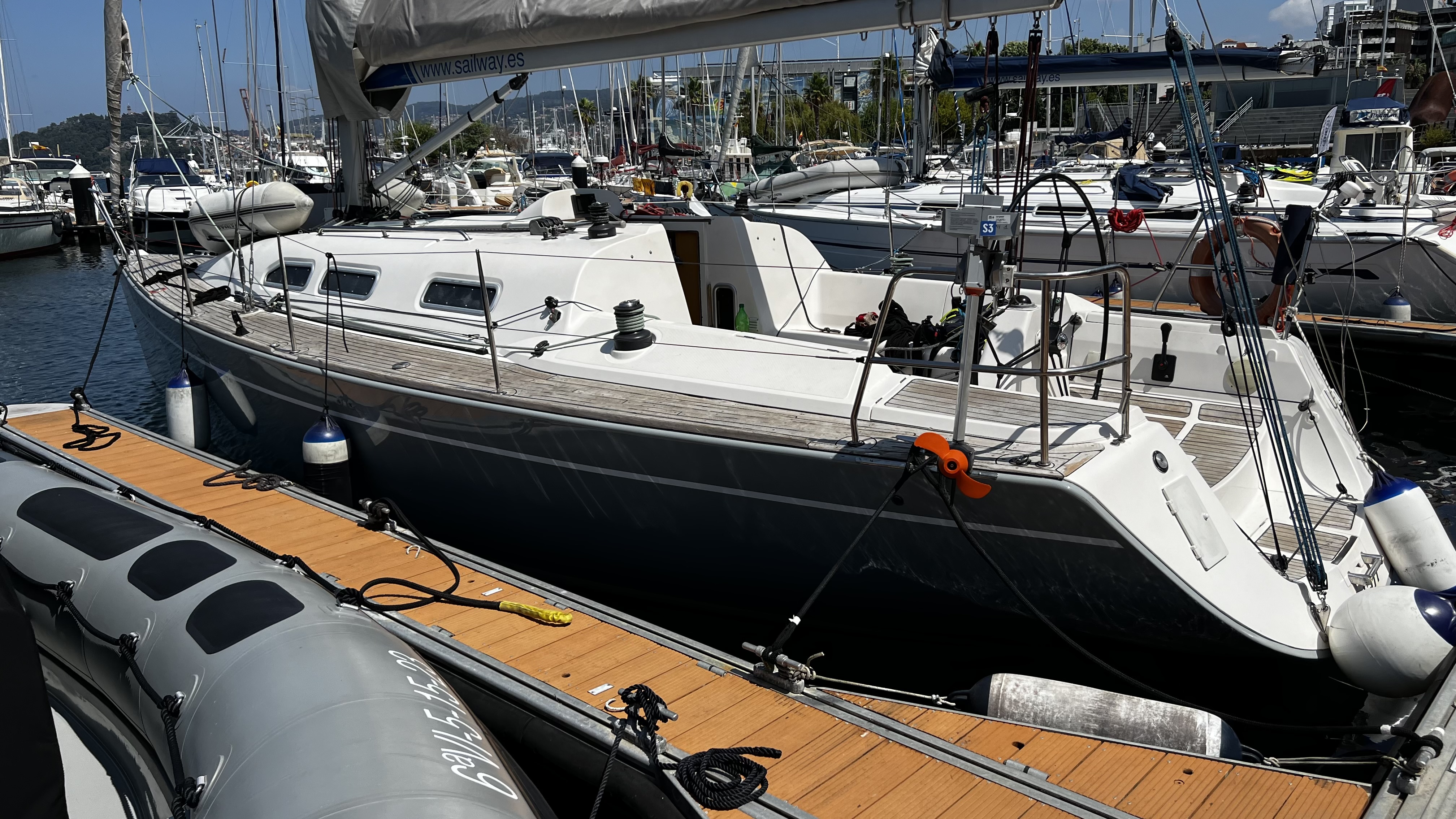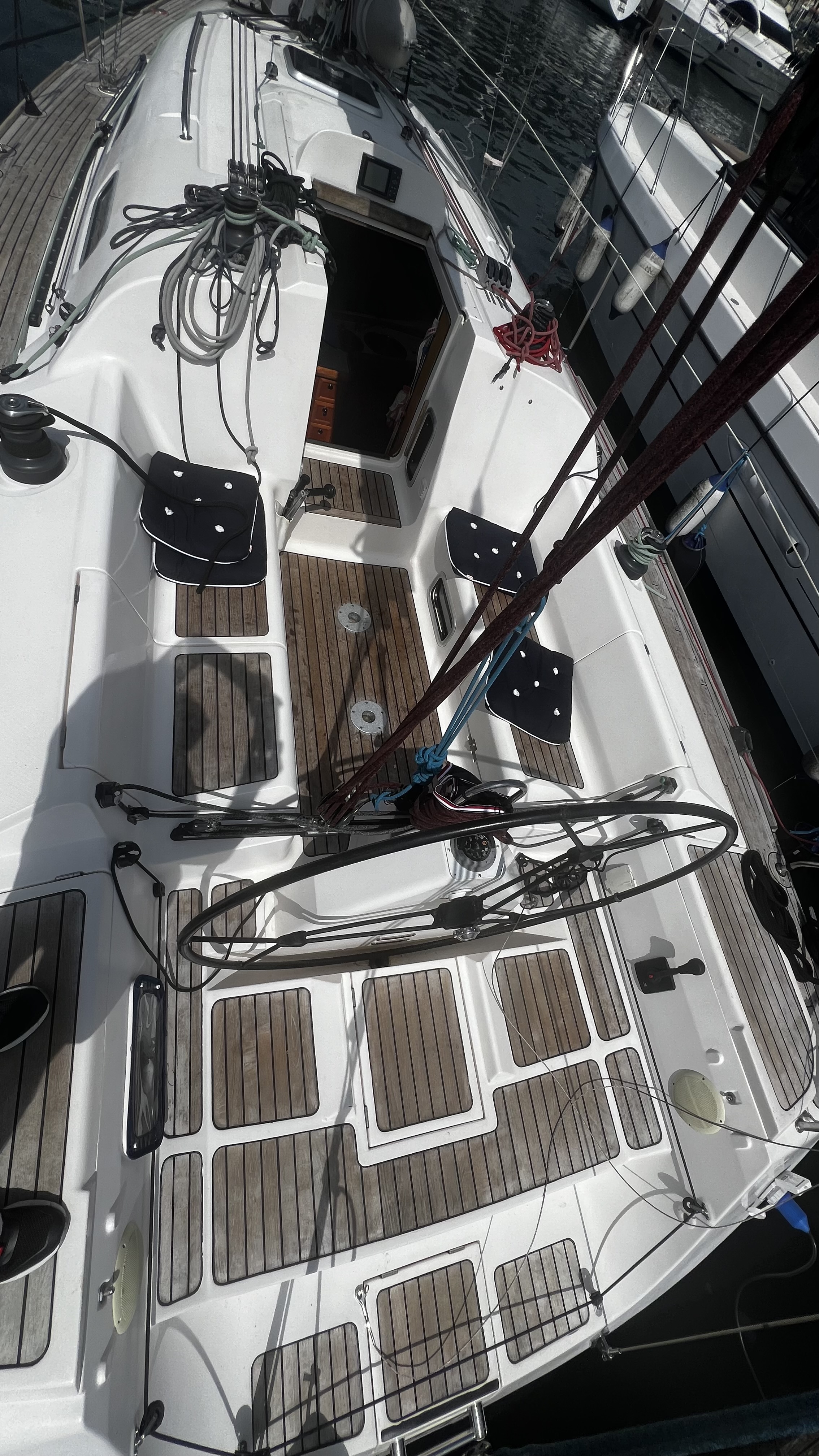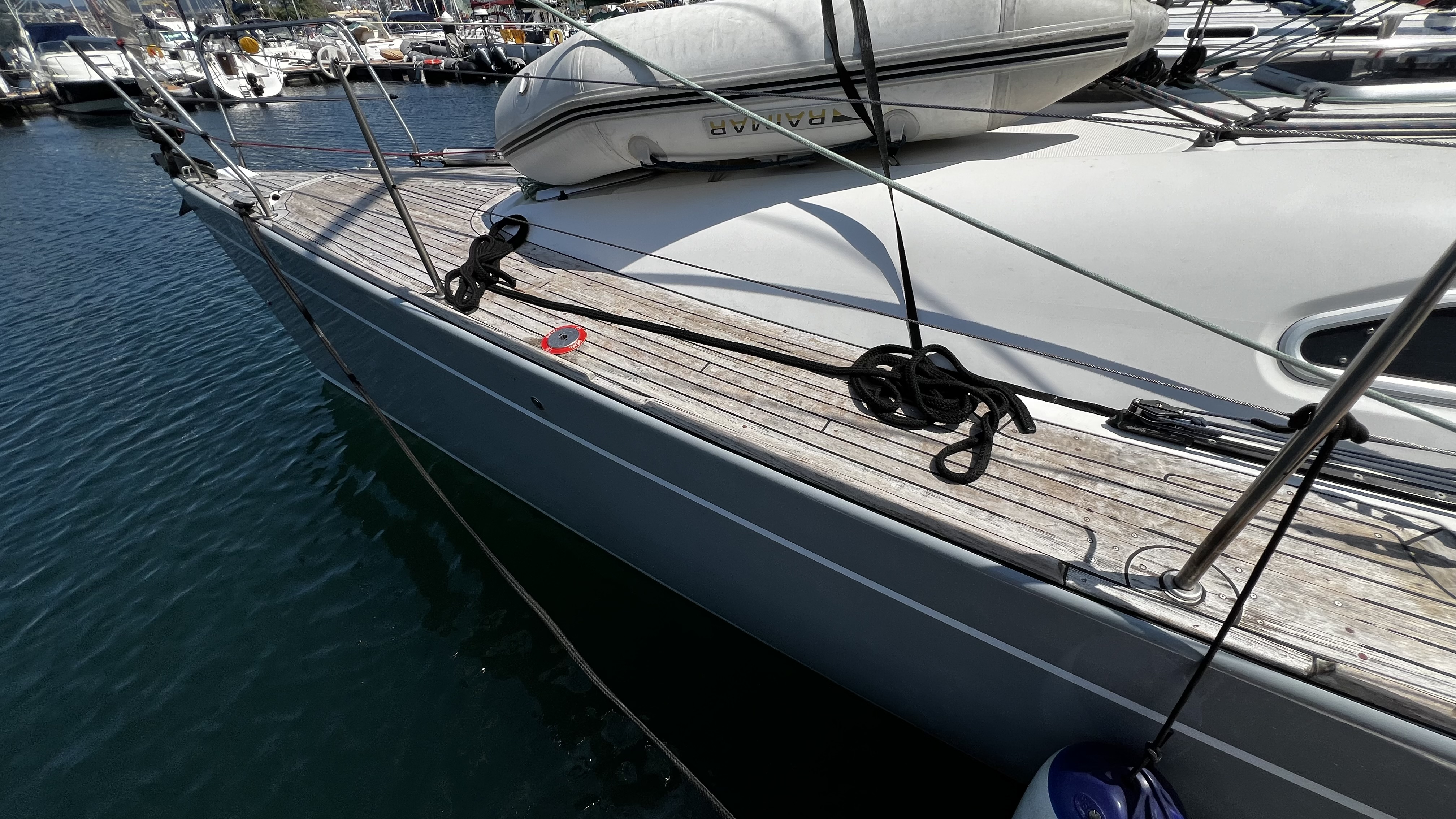 | Outside | Badeleiter, Bootshaken, Cockpitdusche, Cockpitlautsprecher, Cockpittisch, elektr. Ankerwinsch, Faltpropeller, Festmacherleinen, Kunststoff-Eimer (Pütz), Schnorchelausrüstung, Sonnensegel, Teak im Cockpit, Teakdeck, Wasserschlauch, Windex, Winschen |