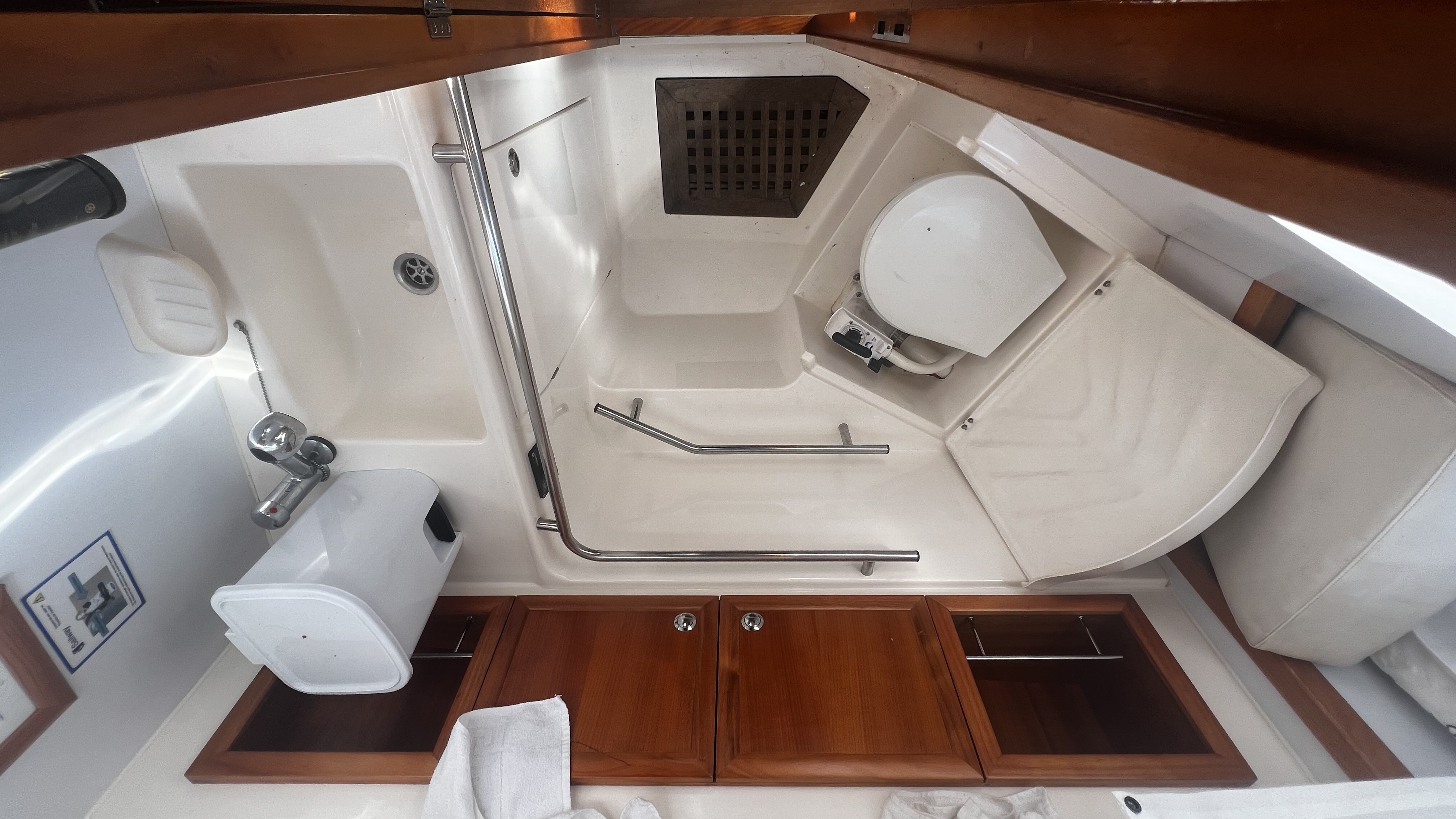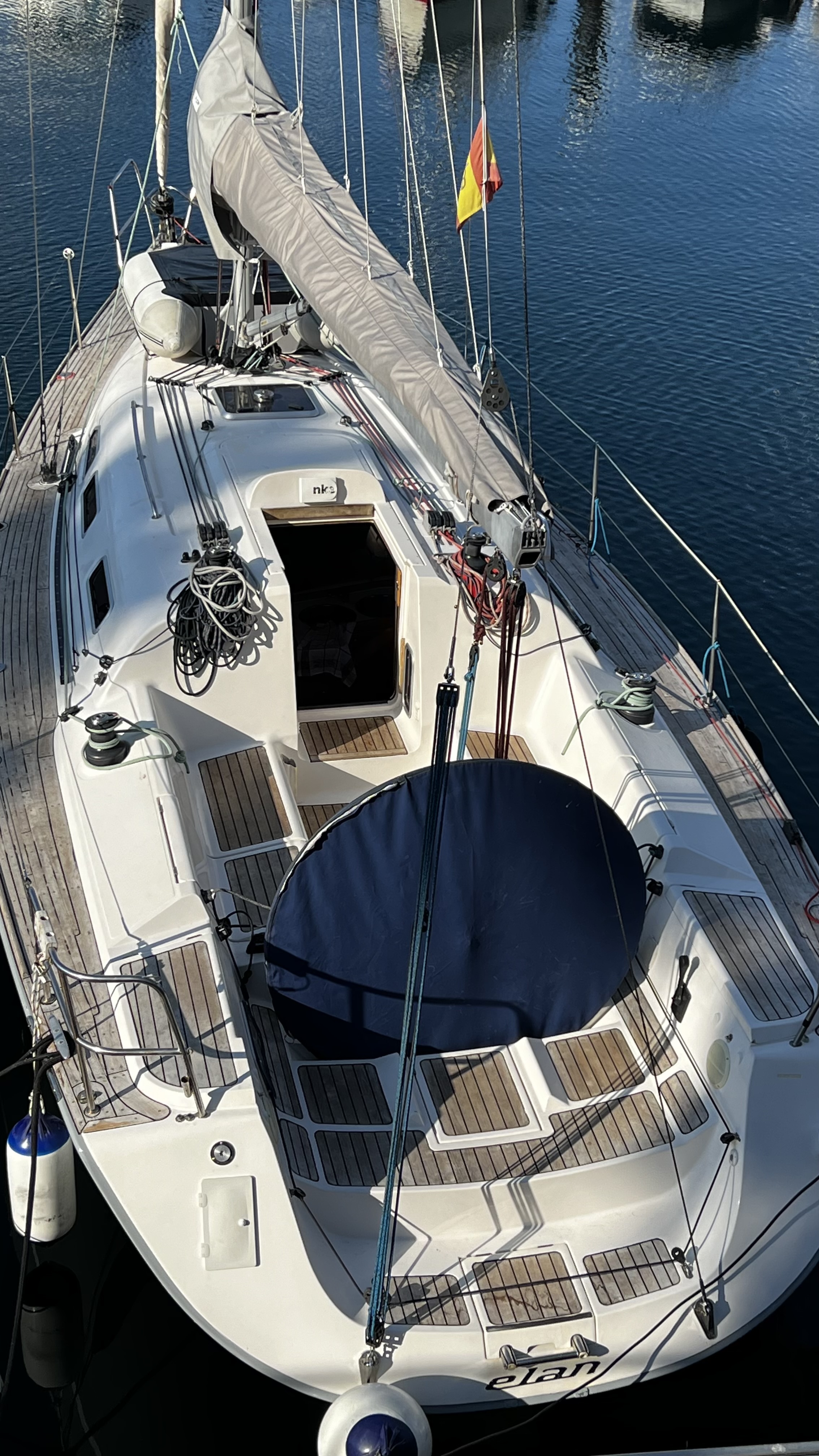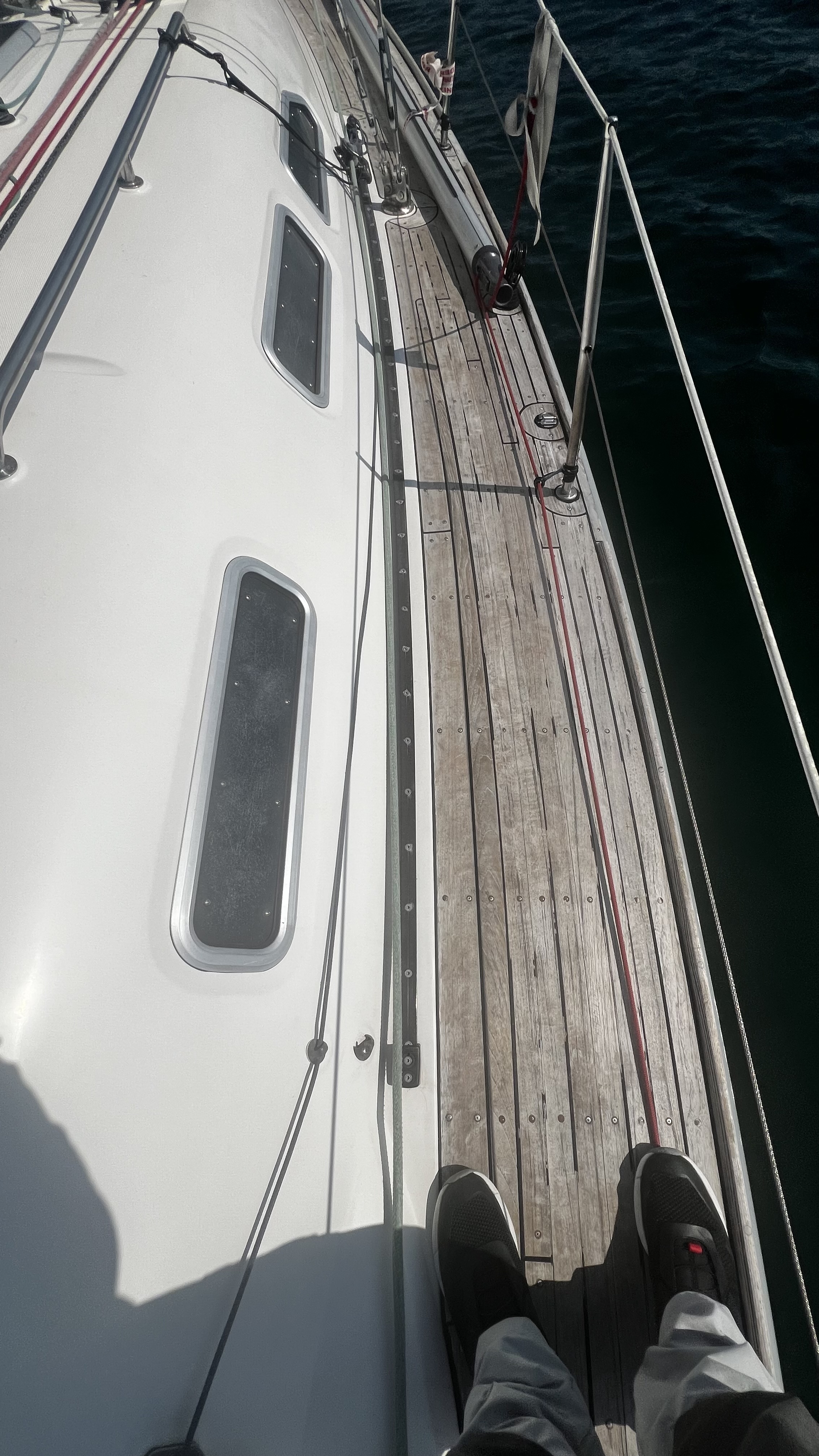 | Outside | Badeleiter, Bootshaken, Cockpitdusche, Cockpitlautsprecher, Cockpittisch, elektr. Ankerwinsch, Faltpropeller, Festmacherleinen, Kunststoff-Eimer (Pütz), Schnorchelausrüstung, Sonnensegel, Teak im Cockpit, Teakdeck, Wasserschlauch, Windex, Winschen |