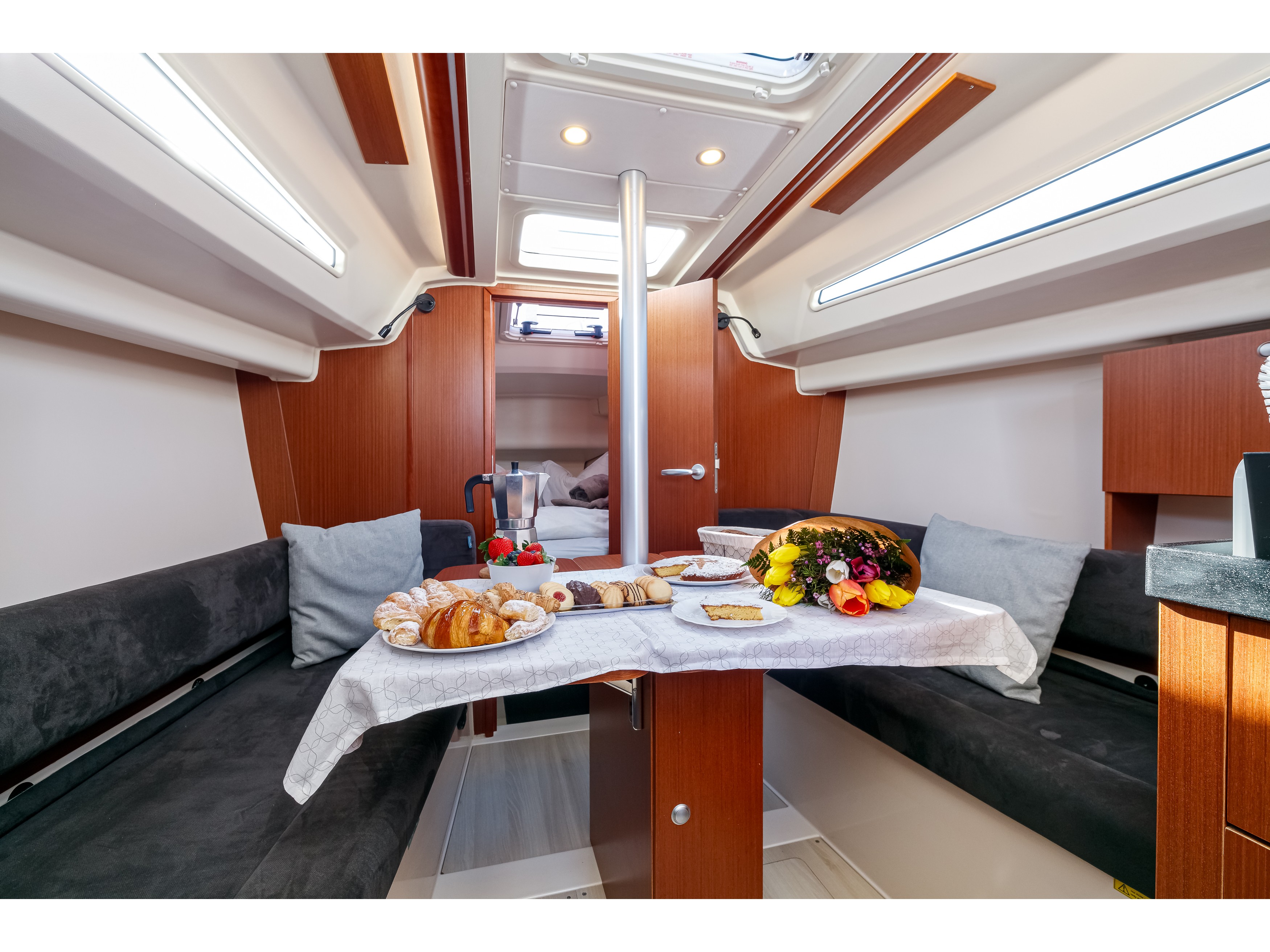 | Outside | 220 V-Landanschluss, Bolzenschneider, Bootshaken, Cockpittisch, elektr. Ankerwinsch, Kunststoff-Eimer (Pütz), Schnorchelausrüstung, Sprayhood, Winschen |