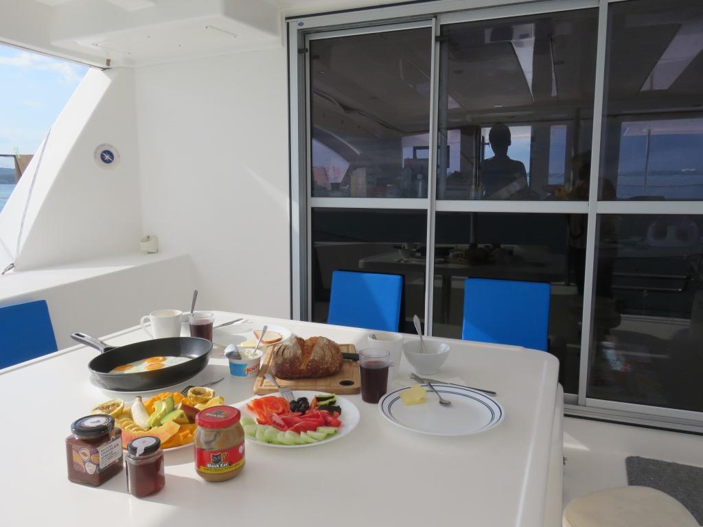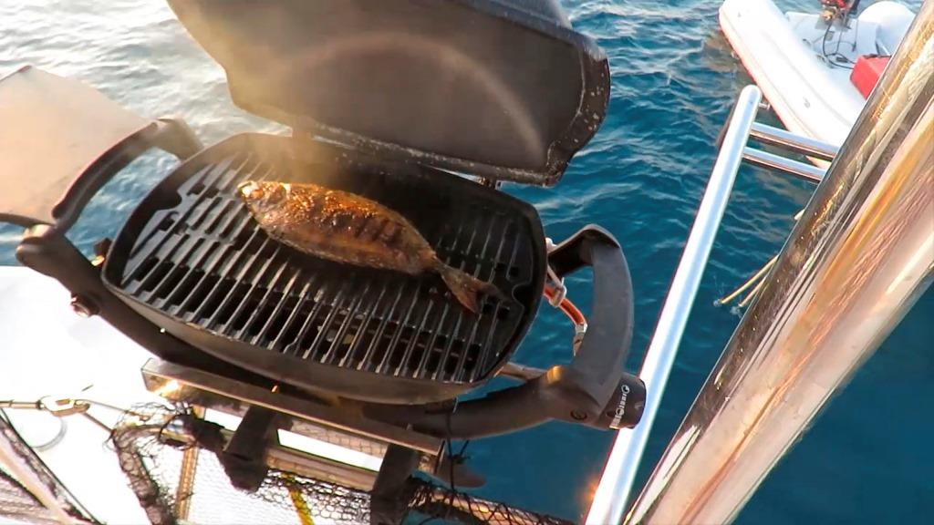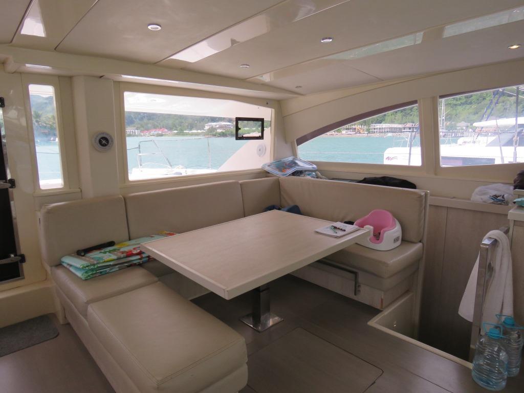 | Outside | Anker mit Kette, Badeplattform, Biminitop, elektr. Ankerwinsch, elektr. Winsch, Grill, Heckdusche, Solaranlage |
