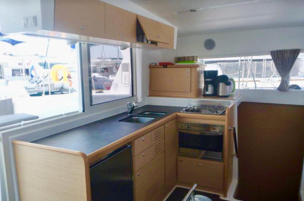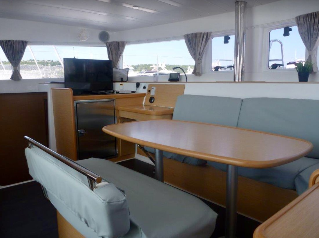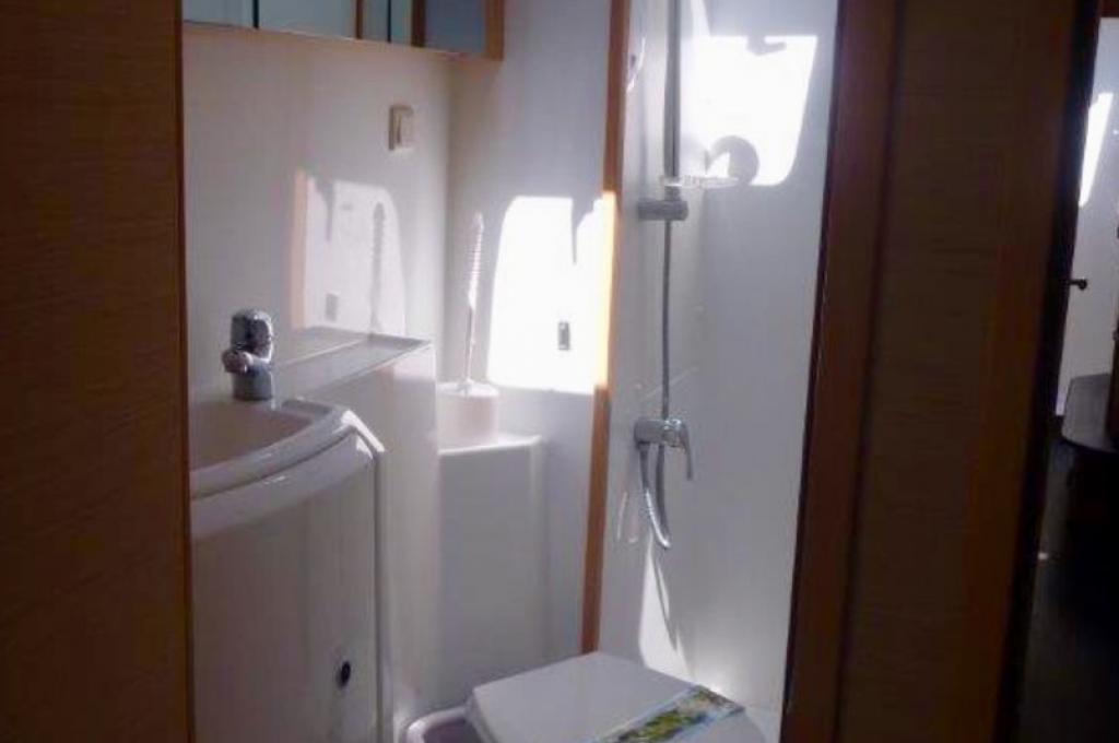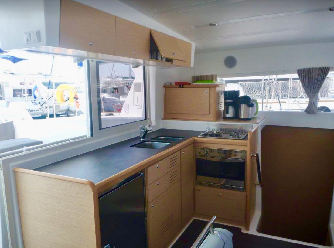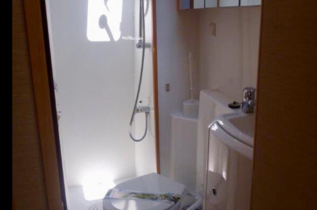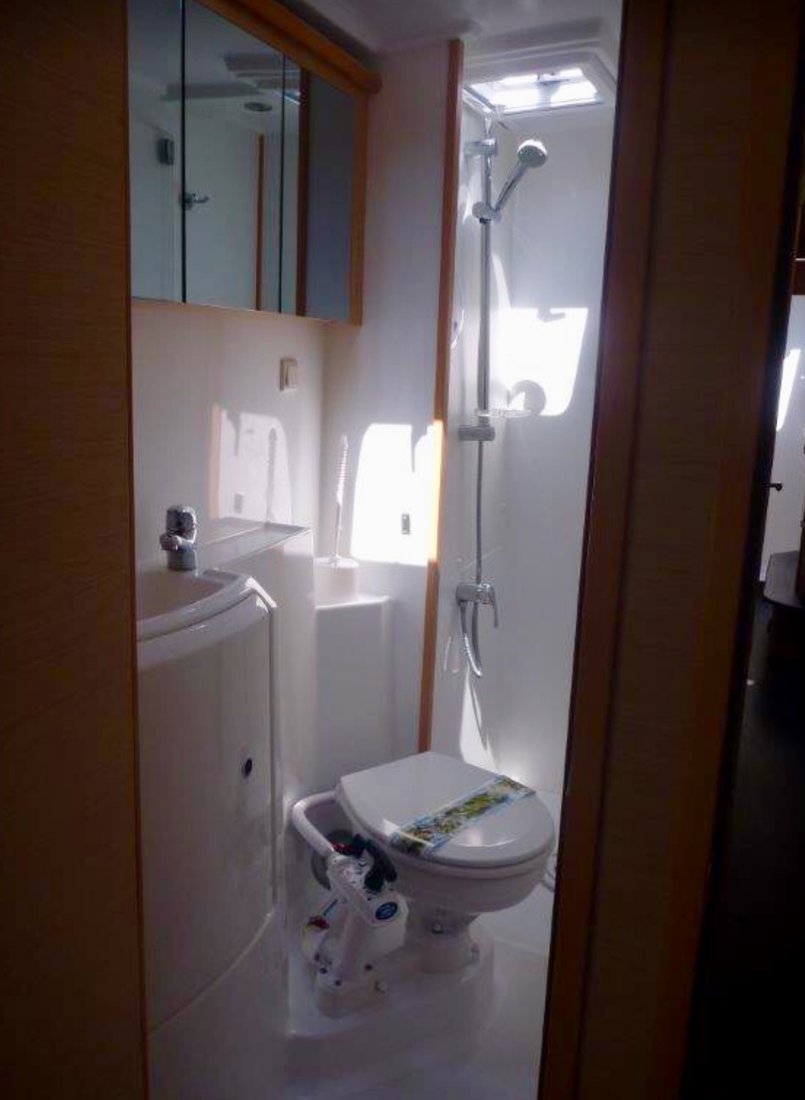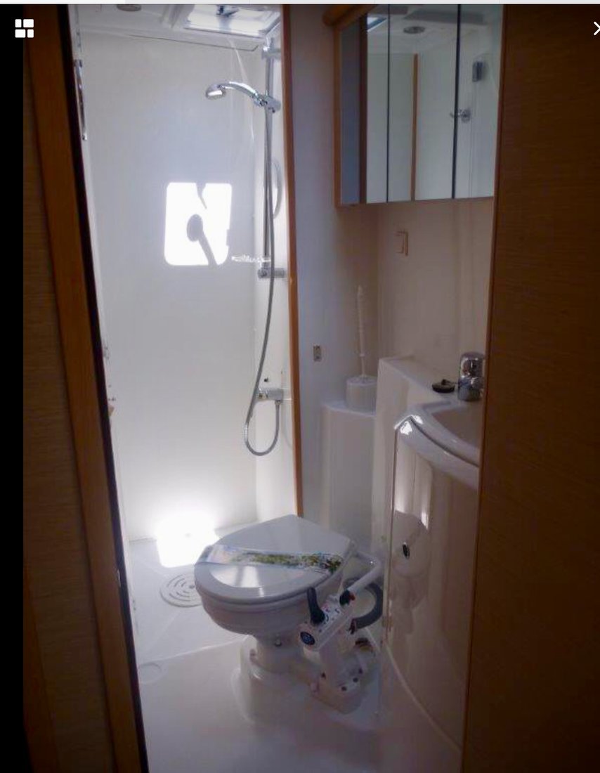 | Inside | Besen und Kehrblech, Bluetooth Player, Gasherd, Generator, Inverter 12V/220V, Kaffeemaschine, Klimaanlage (ohne Landstrombedarf), Klobürste, Kühlschrank, Pantryausstattung, Watermaker |