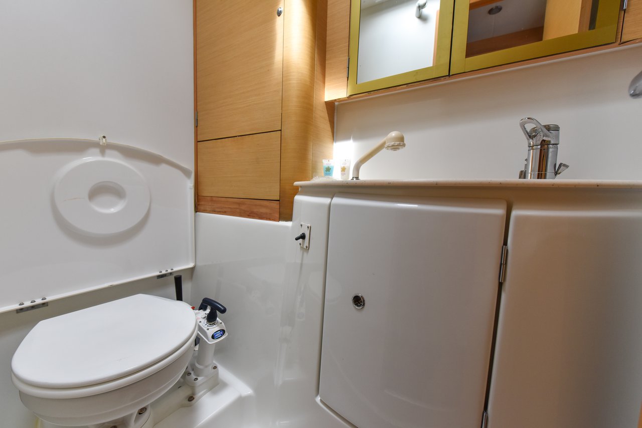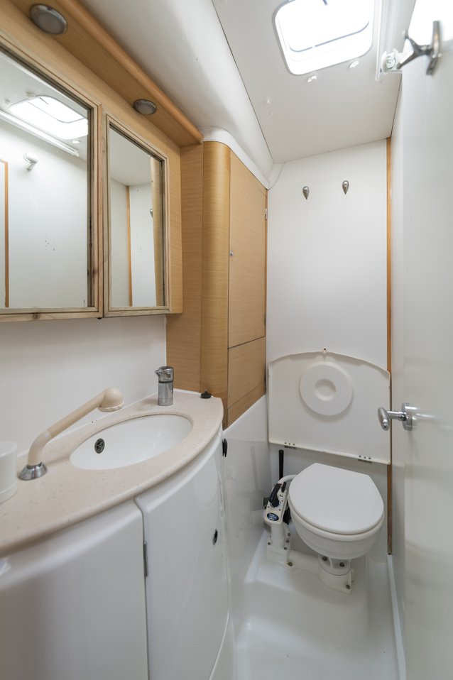 | Inside | Frischwasserpumpe, Kühlschrank, Ladegerät, Lautsprecher im Salon, Pantryausstattung, Radio mit CD und MP3, Ventilator, Ventilatoren in Kabinen |