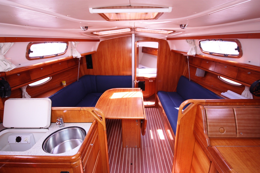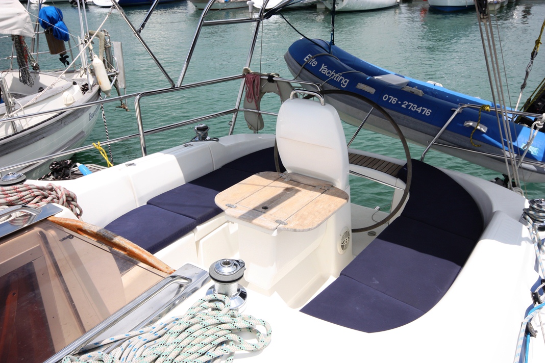 | Outside | Badeleiter, Biminitop, Cockpitdusche, Cockpitpolster, Cockpittisch, Davits, elektr. Ankerwinsch, Heckdusche, Schnorchelausrüstung, Solaranlage |