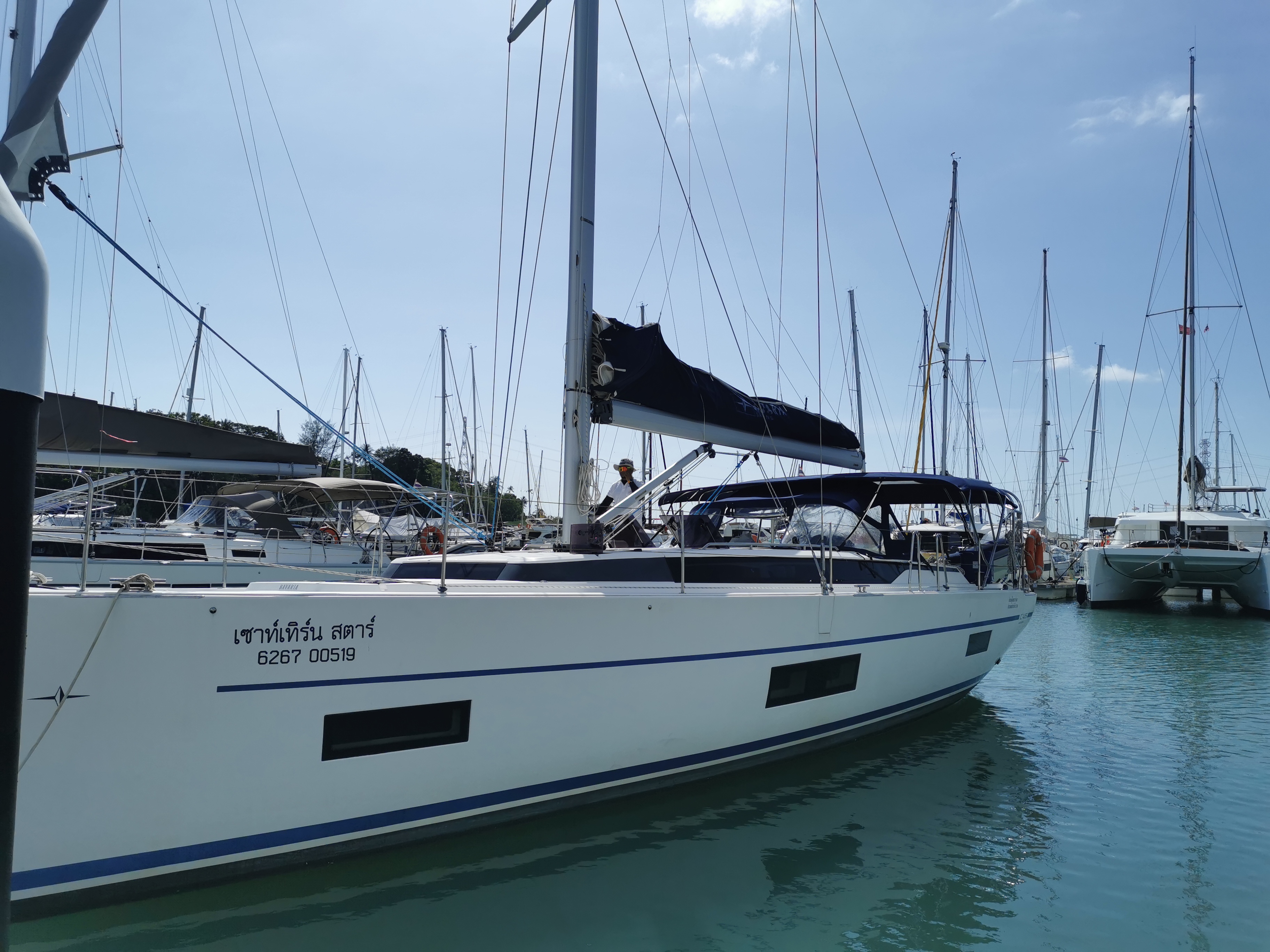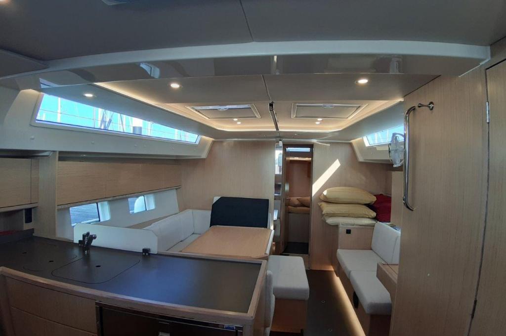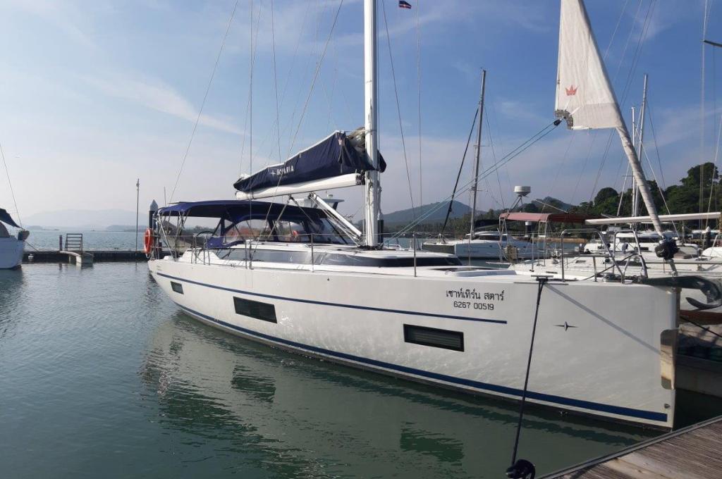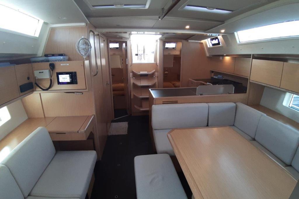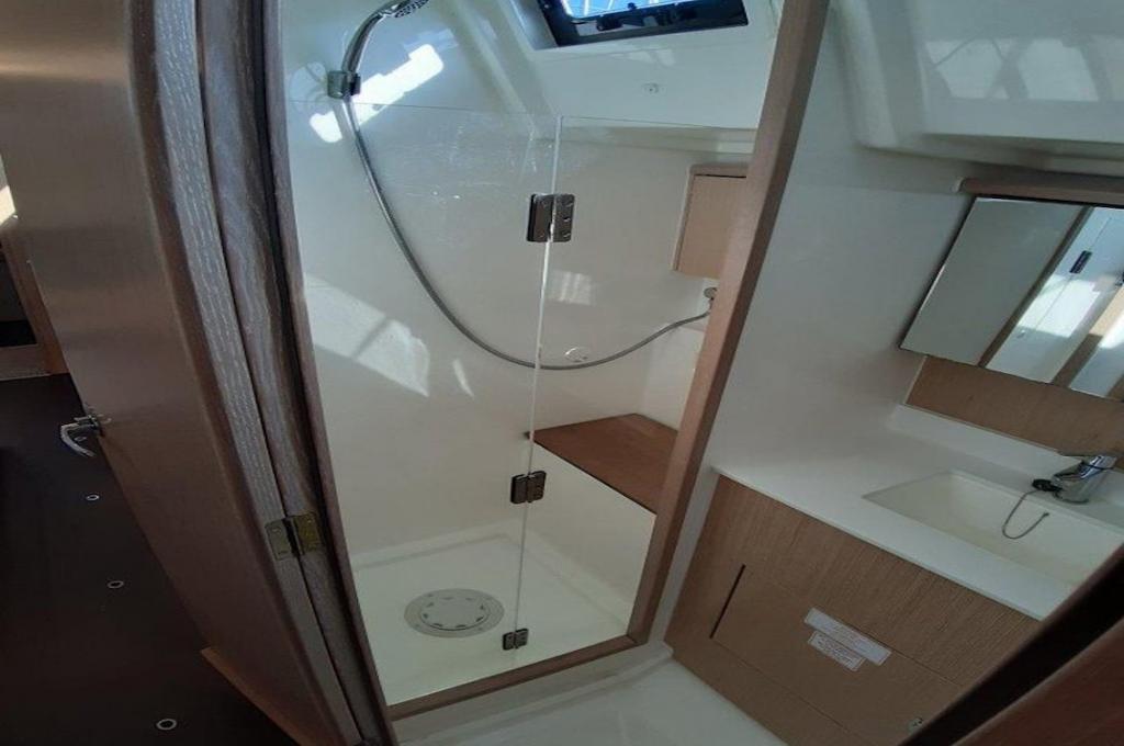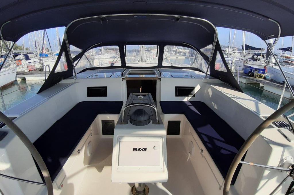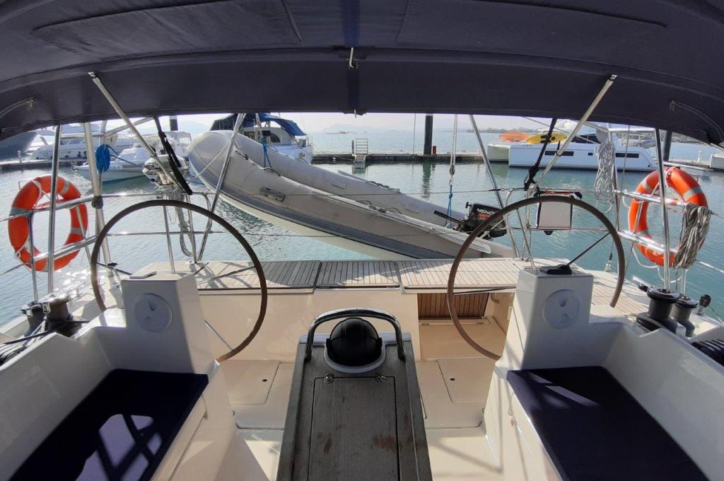 | Outside | Anker mit Kette, Badeleiter, Badeplattform, Biminitop, Bootshaken, Cockpitdusche, Cockpitpolster, Cockpittisch, Davits, Deckbürste, elektr. Ankerwinsch, Fender, Festmacherleinen, Kunststoff-Eimer (Pütz), Schnorchelausrüstung, Solaranlage, Winschen |