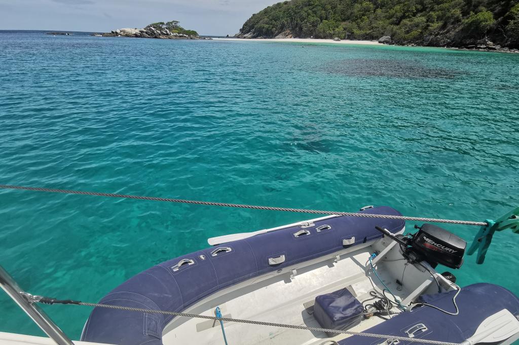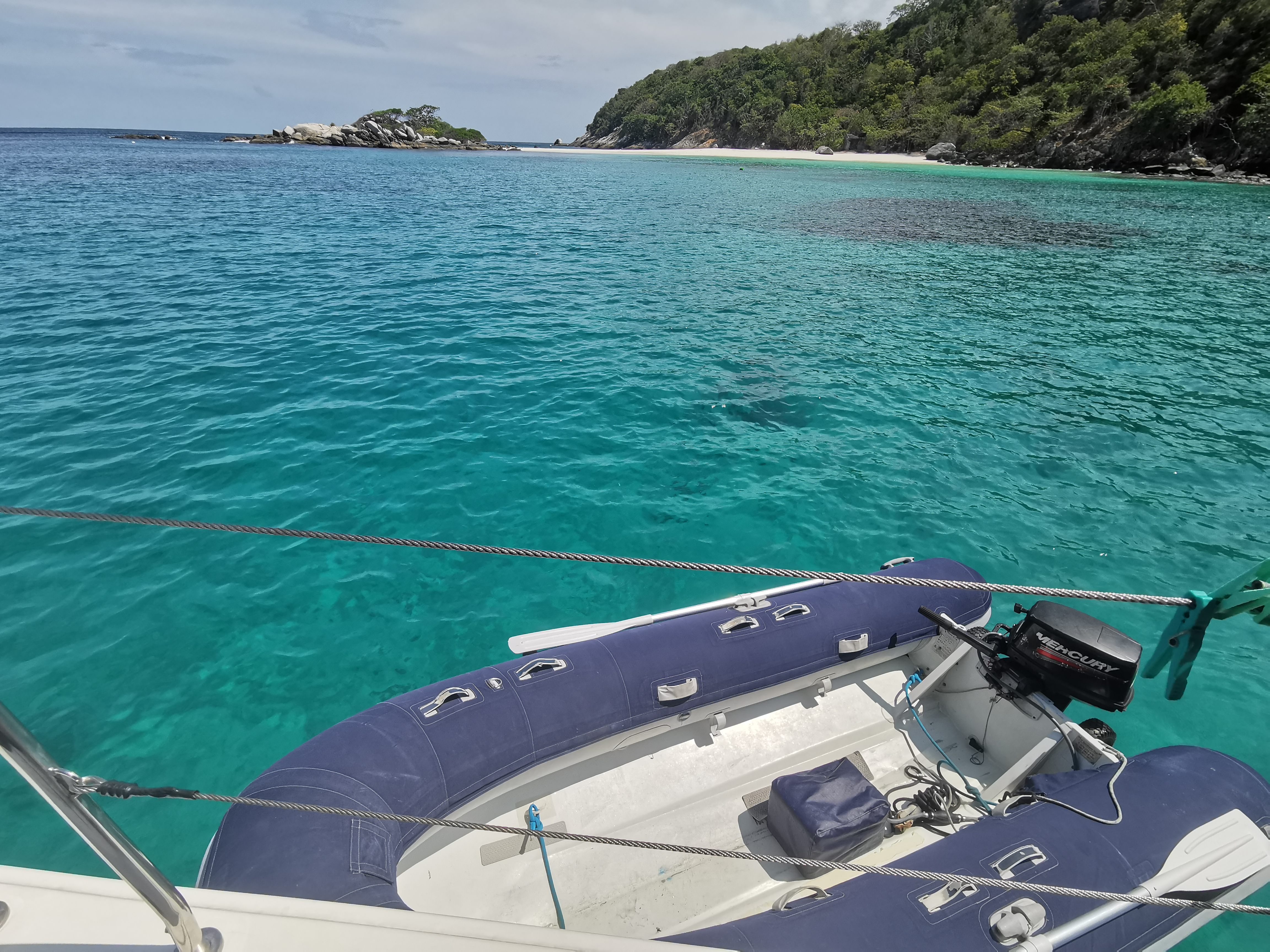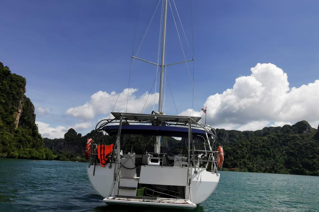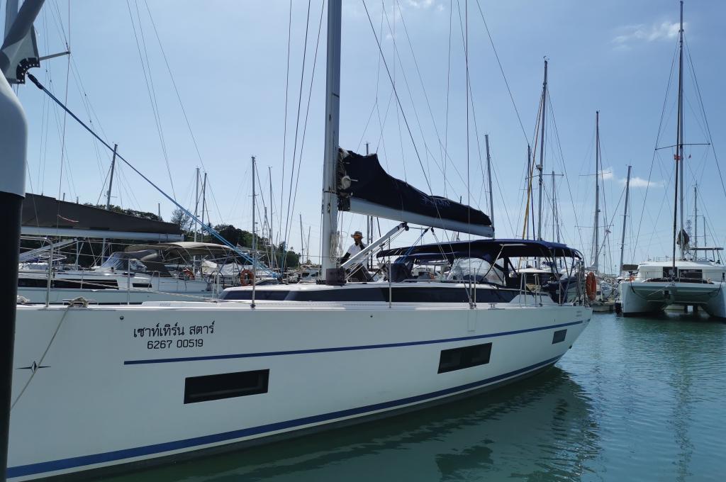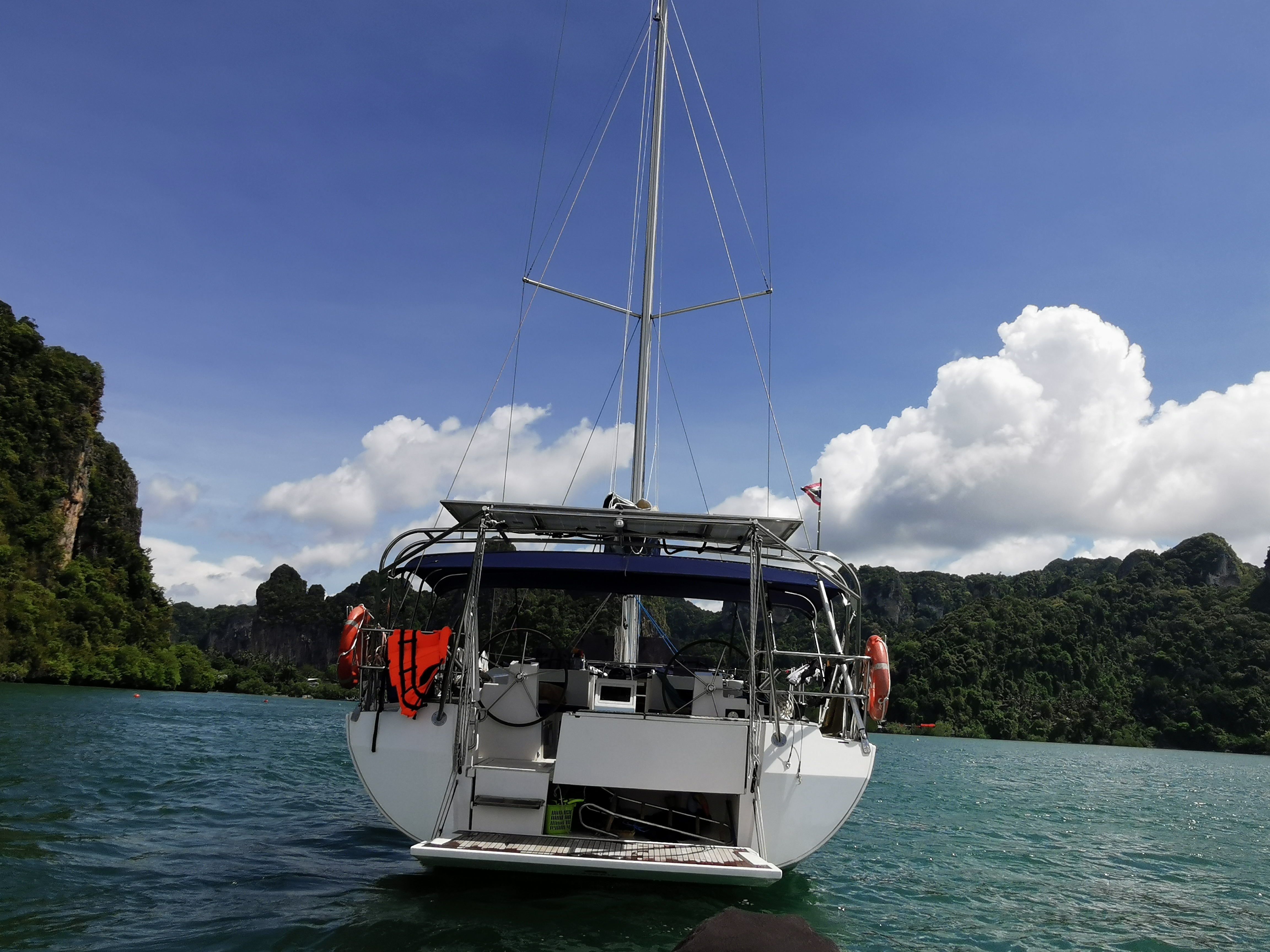 | Outside | Anker mit Kette, Badeleiter, Badeplattform, Biminitop, Bootshaken, Cockpitdusche, Cockpitpolster, Cockpittisch, Davits, Deckbürste, elektr. Ankerwinsch, Fender, Festmacherleinen, Kunststoff-Eimer (Pütz), Schnorchelausrüstung, Solaranlage, Winschen |