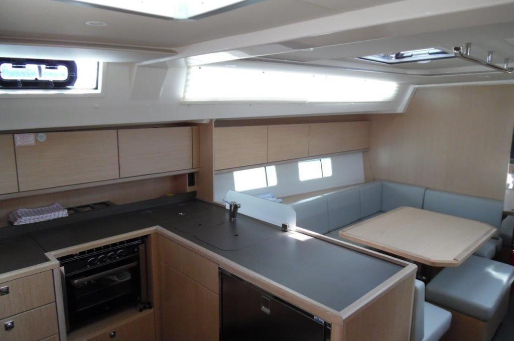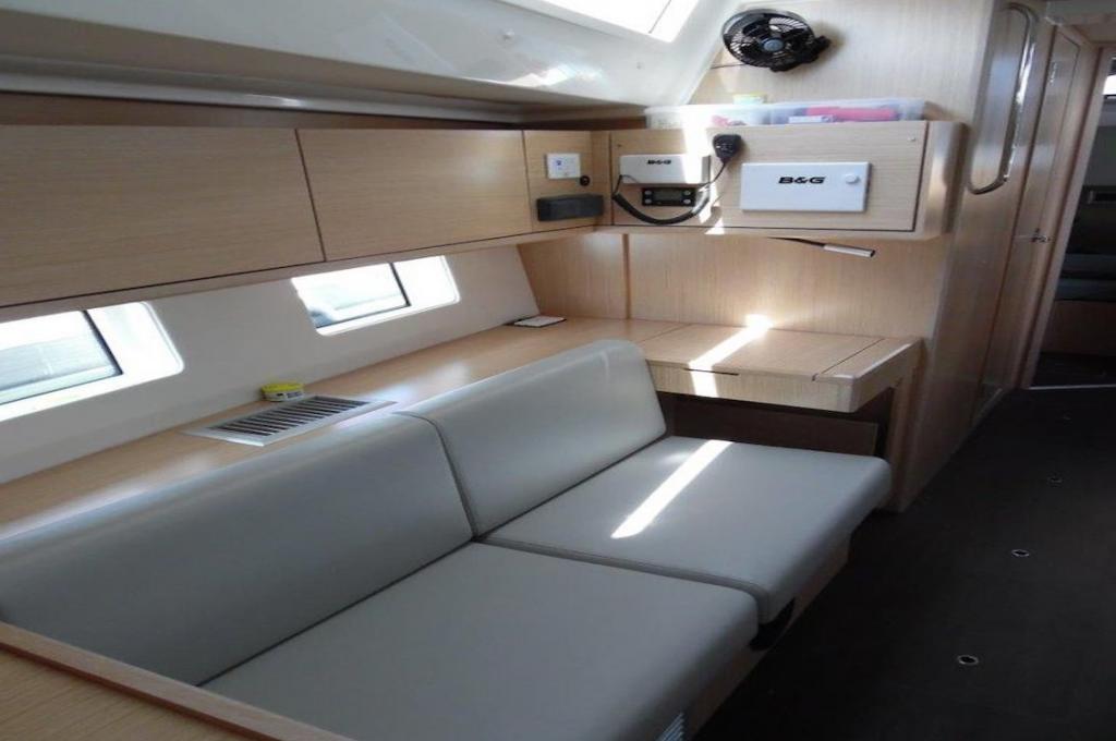 Outside Anker mit Kette, Badeleiter, Badeplattform, Biminitop, Bootshaken, Cockpitdusche, Cockpitpolster, Cockpittisch, Davits, Deckbürste, elektr. Ankerwinsch, Fender, Festmacherleinen, Kunststoff-Eimer (Pütz), Schnorchelausrüstung, Solaranlage, Winschen