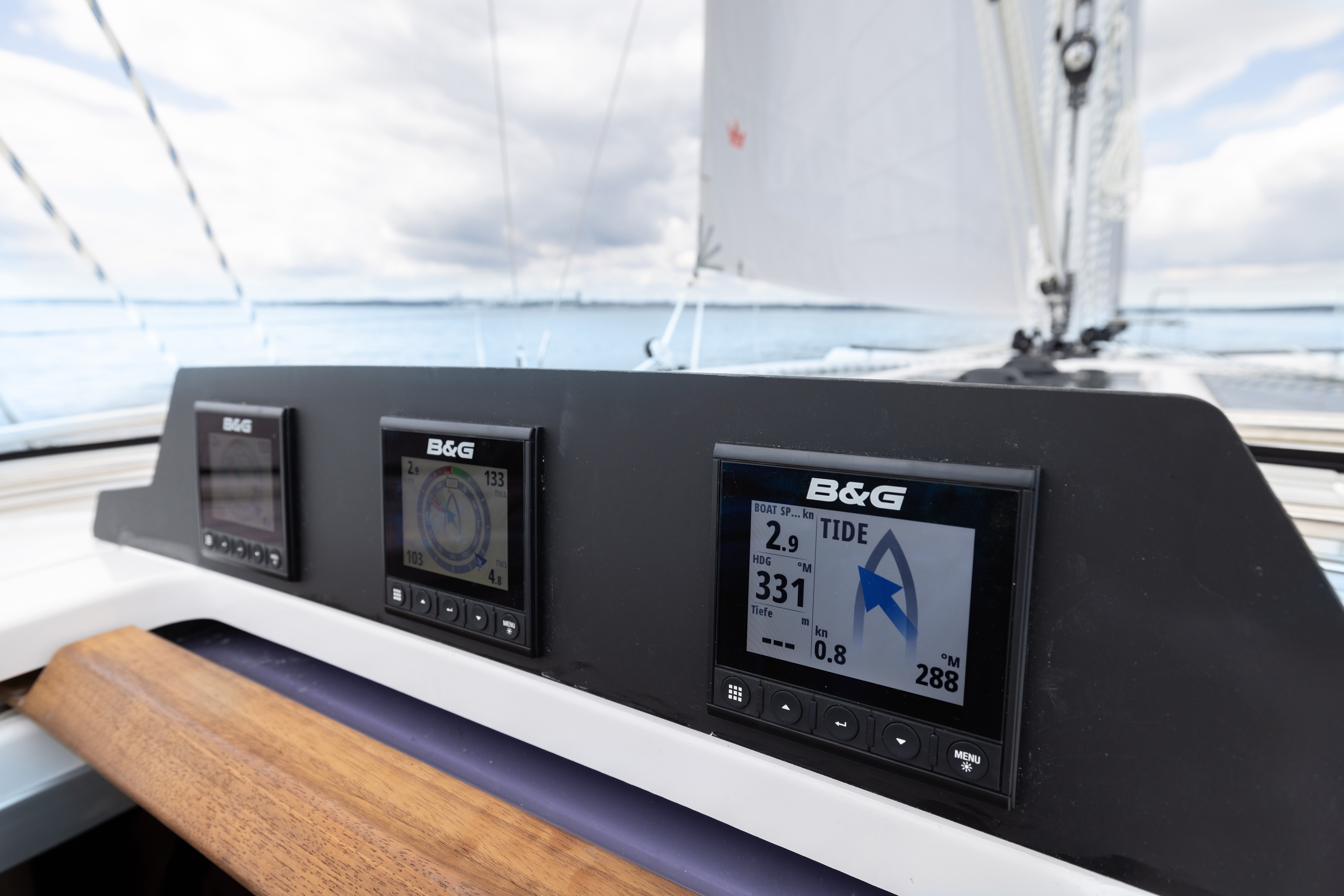 | Navigation | Fernglas, GPS mit Kartenplotter im Cockpit, Hafenhandbücher, Navigationsbesteck, Seekarten, Windmesser |
