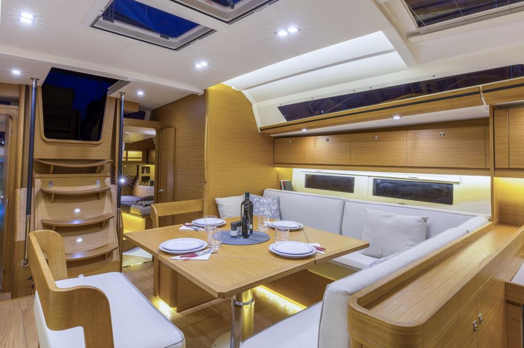 | Outside | 220 V-Landanschluss, Badeleiter, Badeplattform, Biminitop, Cockpitdusche warm/kalt, Cockpitlautsprecher, Cockpitpolster, Cockpittisch, elektr. Ankerwinsch, Selbstholende Winschen, Sprayhood, Teak im Cockpit |