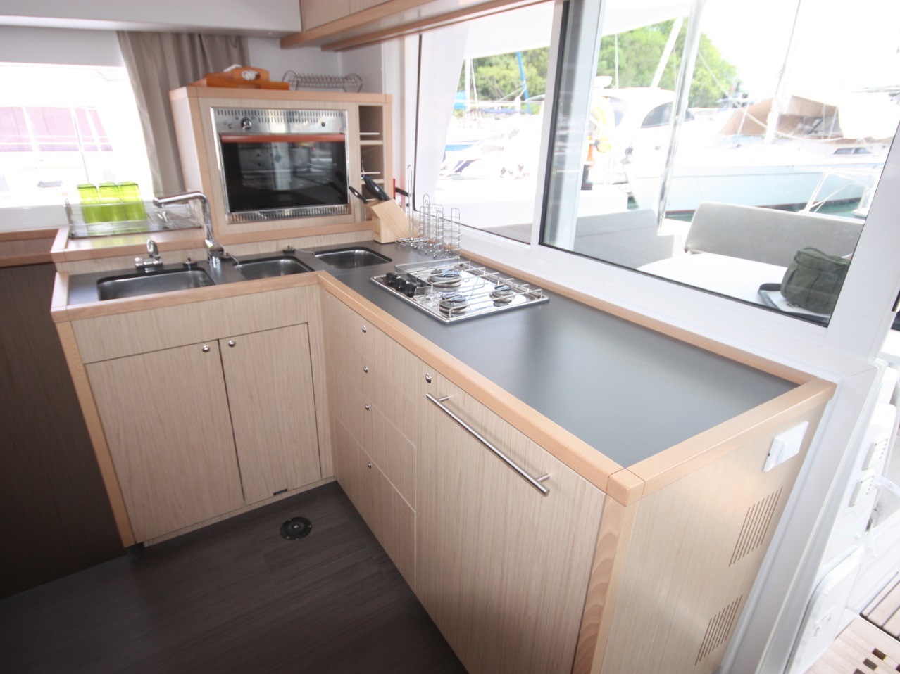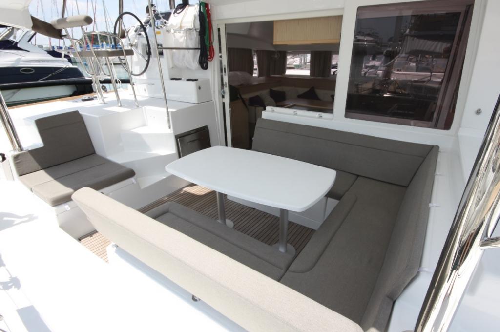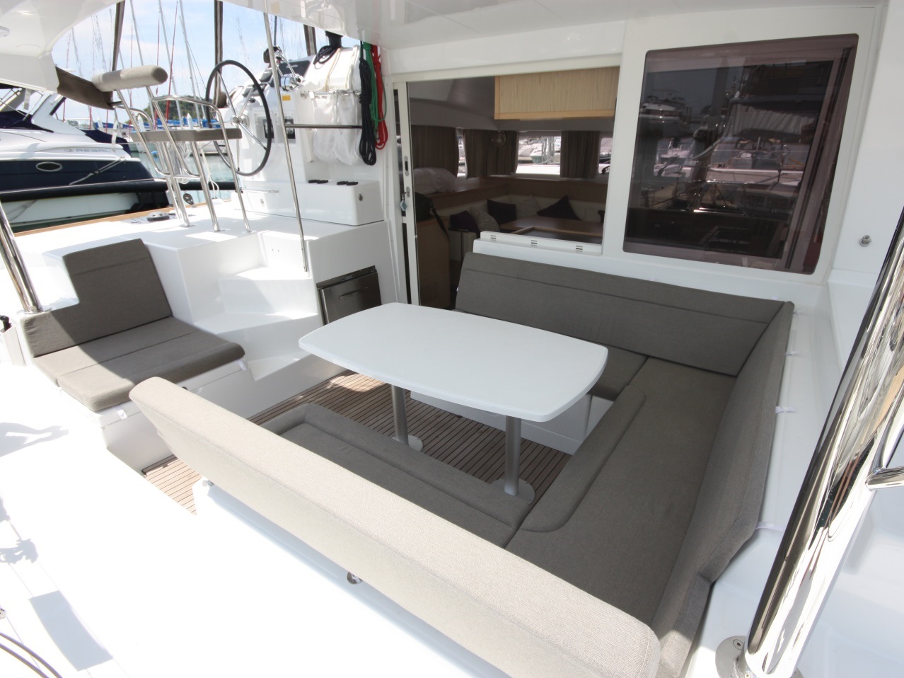 | Outside | Badeleiter, Biminitop, Cockpitdusche, Cockpitpolster, Cockpittisch, Davits, elektr. Ankerwinsch, Grill, Schnorchelausrüstung, Solaranlage |
