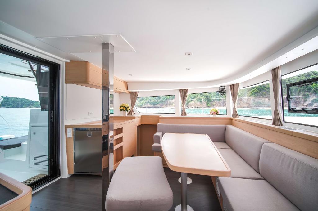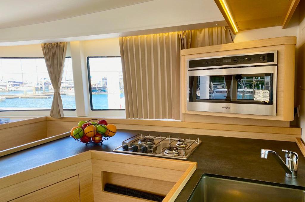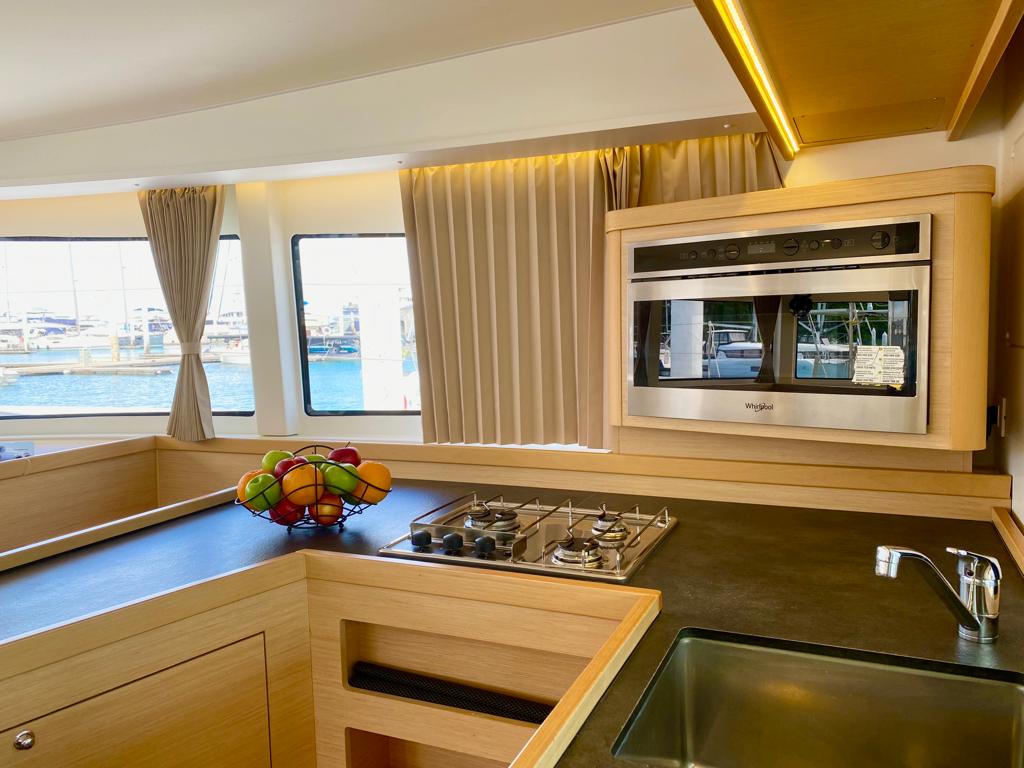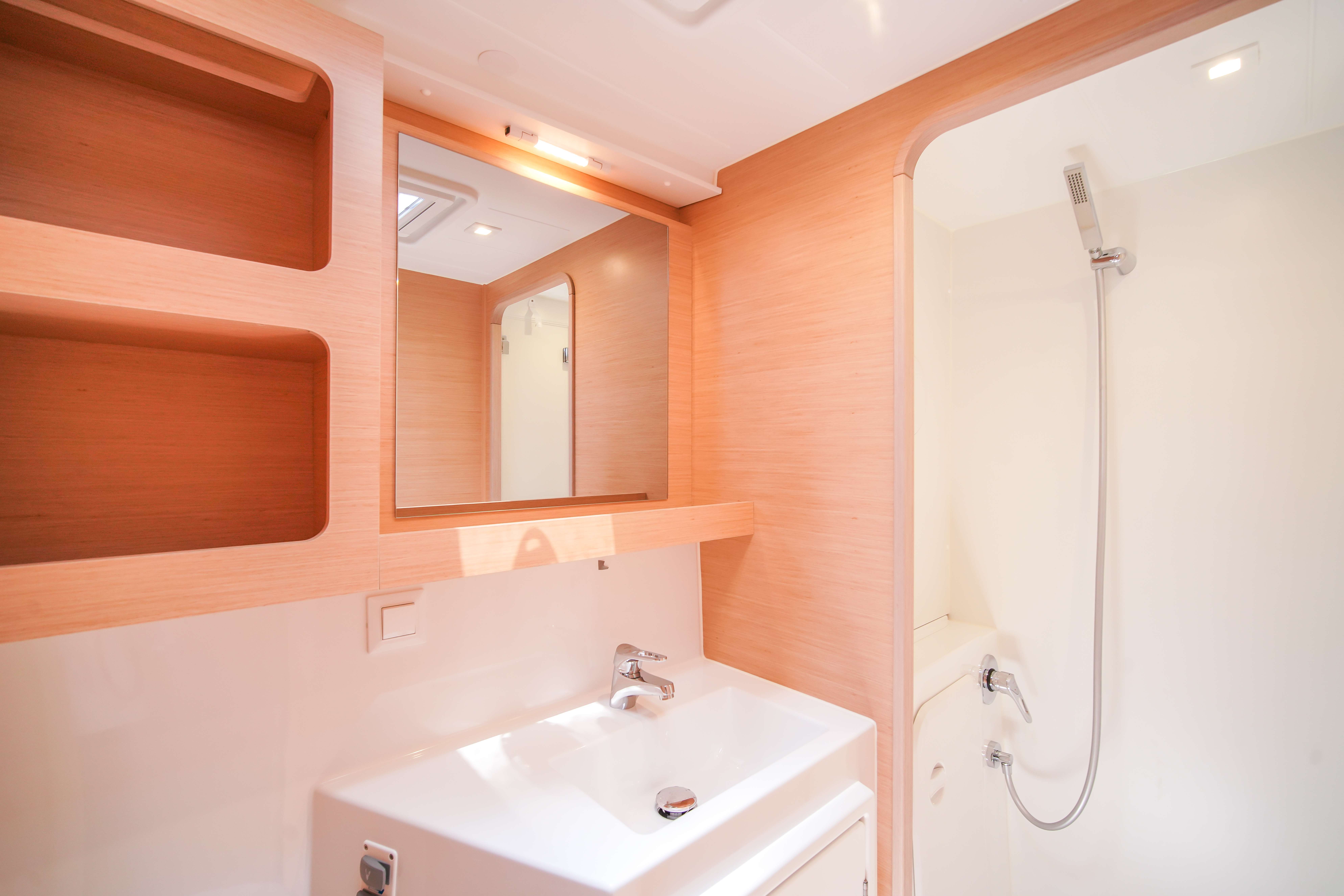 | Inside | 220V Steckdosen, Bluetooth Player, Dusche, Eisbox, Gasherd mit Backofen, Gefrierschrank, Generator, Inverter 12V/220V, Klimaanlage (ohne Landstrombedarf), Kühlschrank, Kühlschrank mit Gefrierfach, Landstromkabel, Mikrowelle, Ventilatoren in Kabinen, Watermaker, WC |