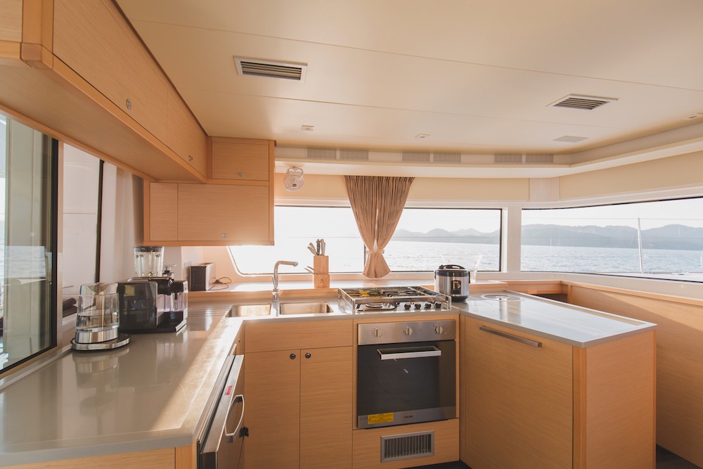 | Inside | 220V Steckdosen, Bluetooth Player, Dusche, DVD-Player, Eiswürfelmaschine, Gasherd mit Backofen, Gefrierschrank, Generator, Geschirrspüler, Heizung, Inverter 12V/220V, Kaffeemaschine, Klimaanlage (ohne Landstrombedarf), Kühlschrank, Lautsprecher im Salon, LCD Fernseher, Mikrowelle, MP3-Player, Pantryausstattung, Radio mit CD und MP3, Salontisch absenkbar, Trockner, TV, USB Steckdose, Ventilator, Ventilatoren in Kabinen, Warmwasser, Waschmaschine, Watermaker, WC (elektr.) |
