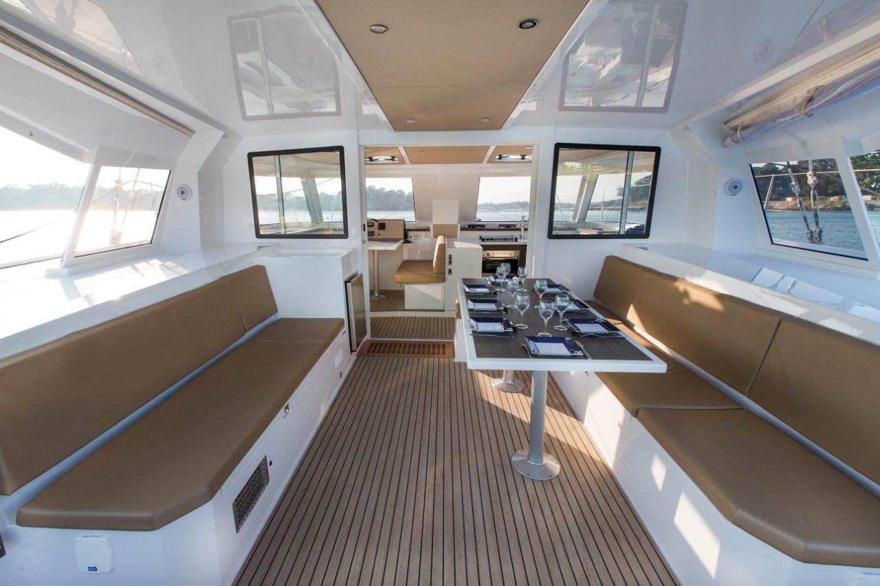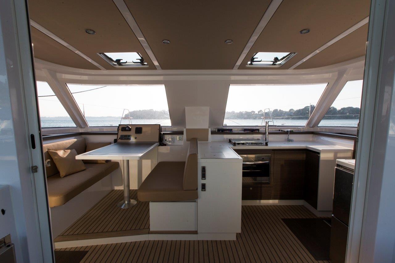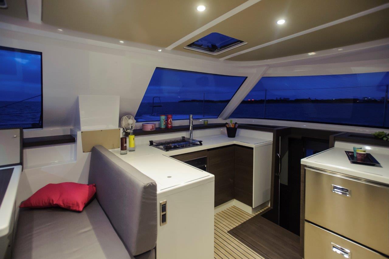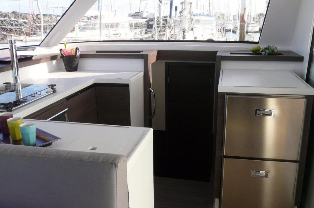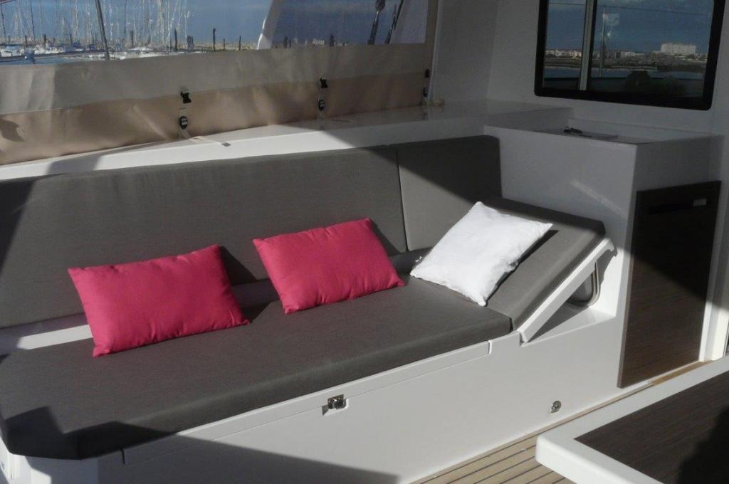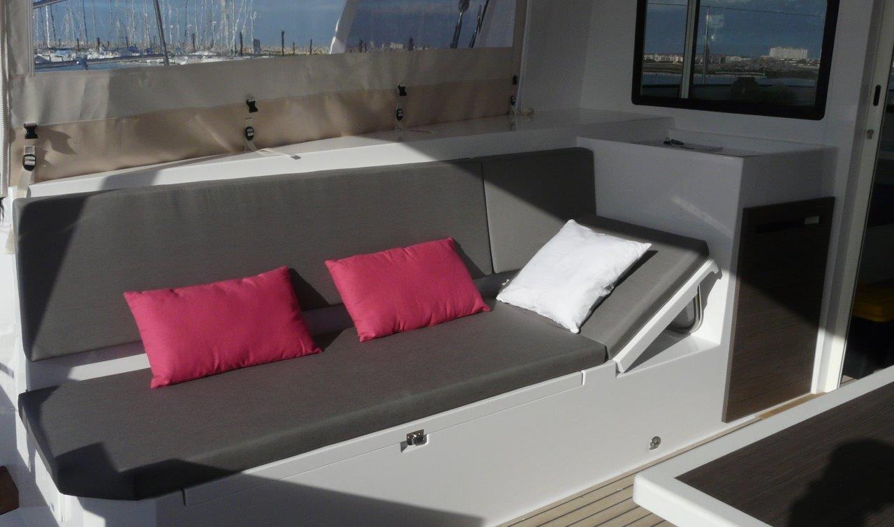 | Outside | Badeleiter, Biminitop, Cockpitdusche, Cockpittisch, Davits, elektr. Ankerwinsch, Grill, Schnorchelausrüstung, Solaranlage |