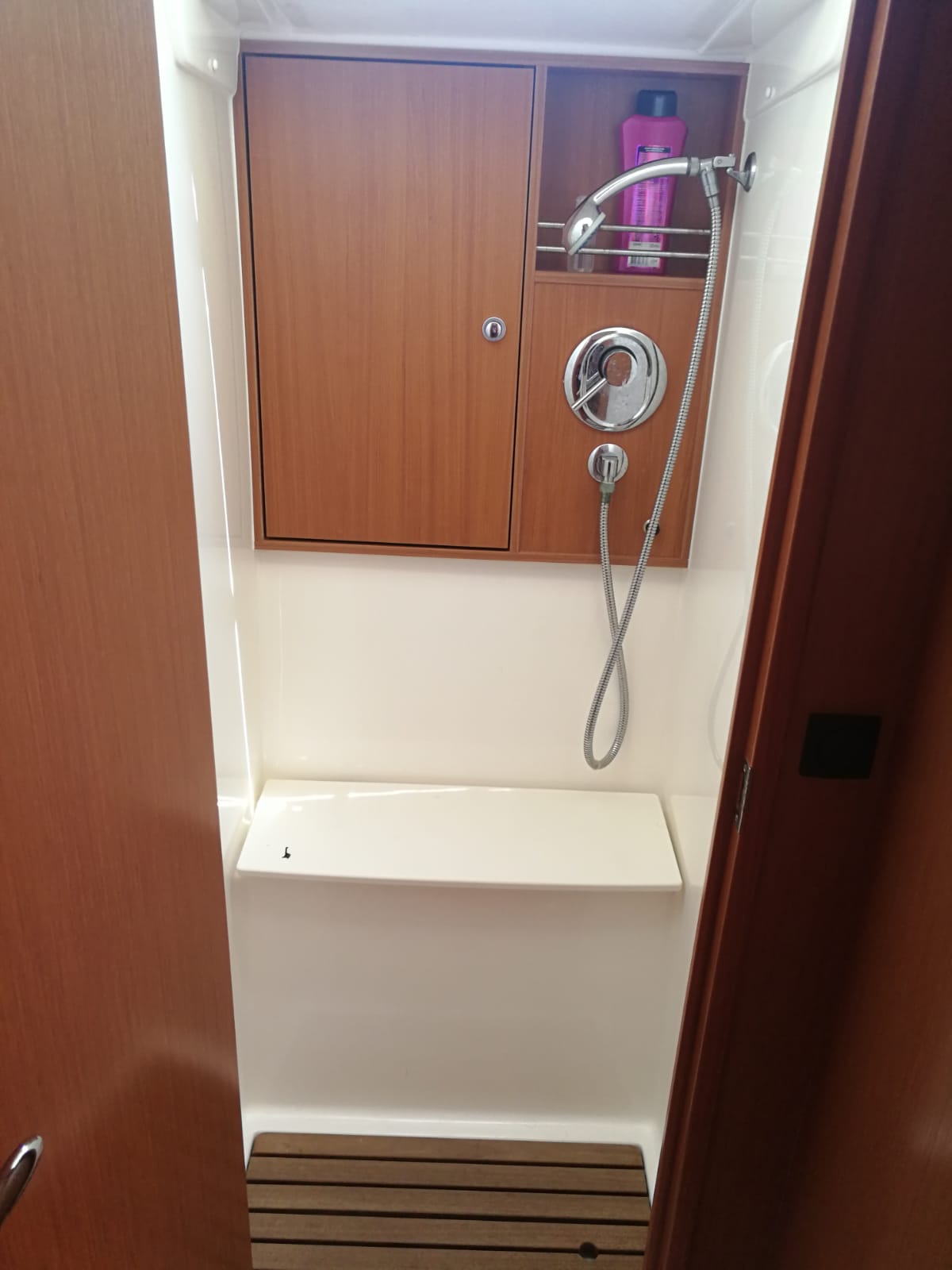 | Outside | 12 V-Anschluss, 220 V-Landanschluss, Anker mit Kette, Biminitop, Bootshaken, Cockpitdusche, Cockpitlautsprecher, Cockpitpolster, Dieselkanister , elektr. Ankerwinsch, Fender, Festmacherleinen, Gangway, Kugelfender, Lifeline System, Sprayhood, Wantenschneider, Wasserkanister , Wasserschlauch, Windex |