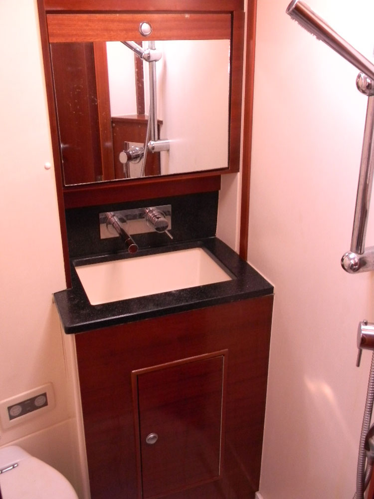 | Outside | Badeleiter, Biminitop, Cockpitdusche, Cockpitlautsprecher, Cockpittisch, elektr. Ankerwinsch, elektr. Großwinsch, Gangway, Sonnensegel, Sprayhood, Windex |