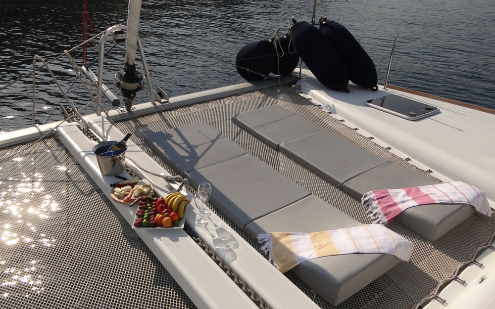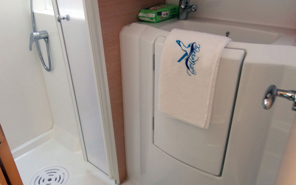 | Outside | Badeleiter, Biminitop, Cockpitdusche, Cockpitlautsprecher, Cockpittisch, elektr. Ankerwinsch, elektr. Genuawinsch, elektr. Großwinsch, Gangway, Sonnensegel, Sprayhood, Windex |