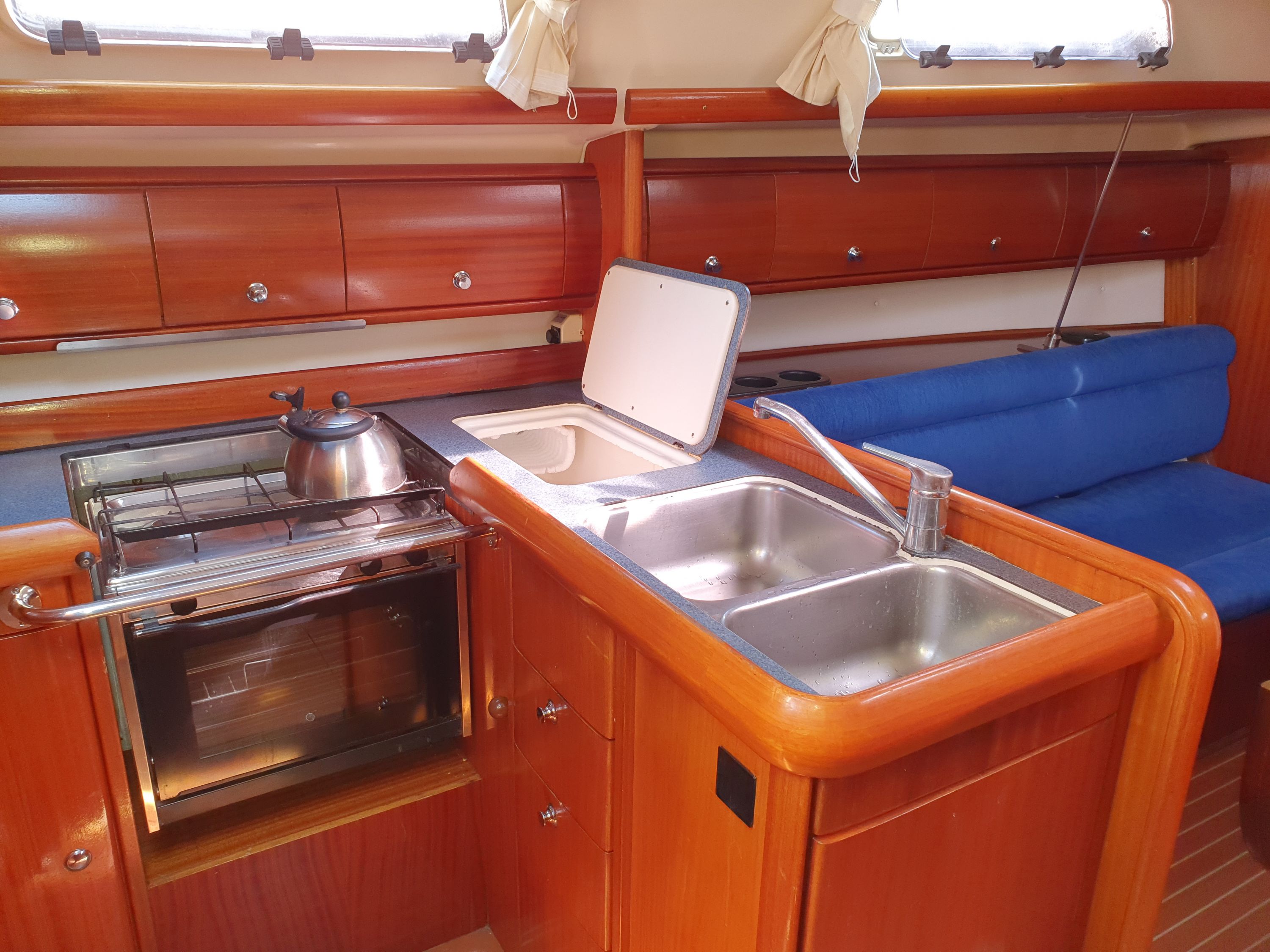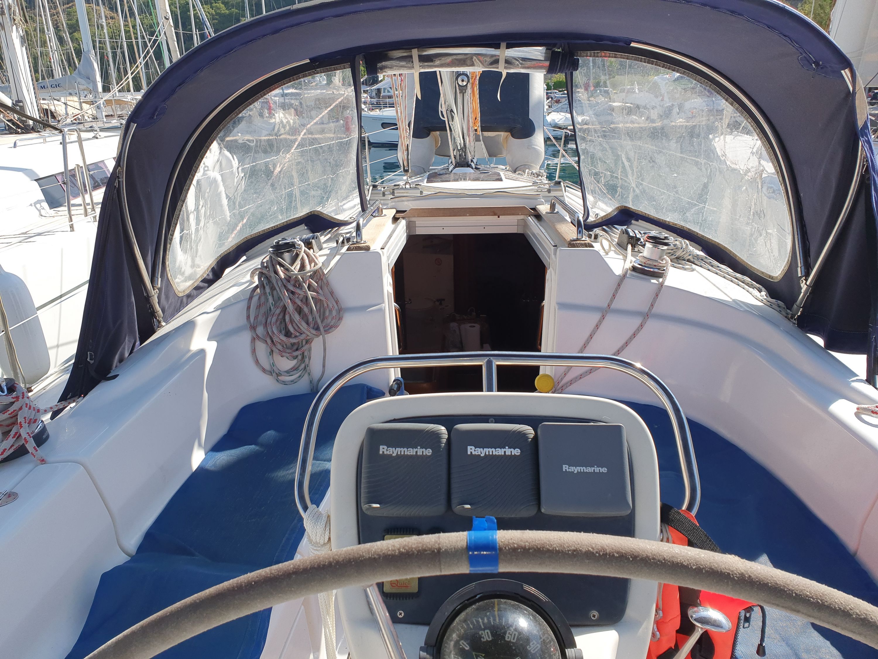 | Outside | 220 V-Landanschluss, Anker mit Kette, Biminitop, Bootshaken, Cockpitdusche, Cockpitpolster, Dieselkanister , elektr. Ankerwinsch, Fender, Festmacherleinen, Kugelfender, Sprayhood, Winschen |