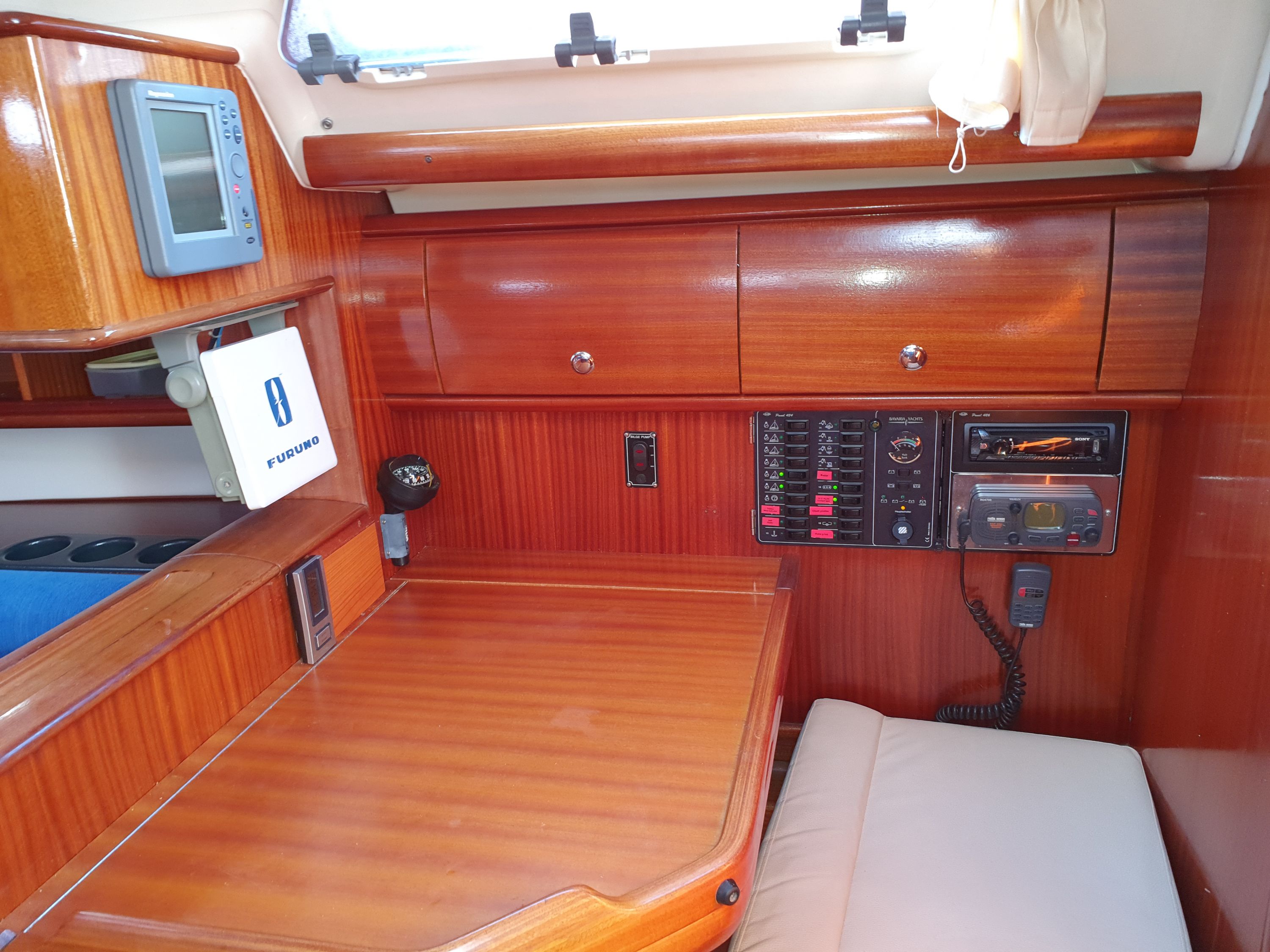| Navigation | Barometer, Fernglas, GPS, Hafenhandbücher, Handpeilkompass, Kartenplotter im Salon, Navigationsbesteck, Radar, Seekarten, Sumlog |