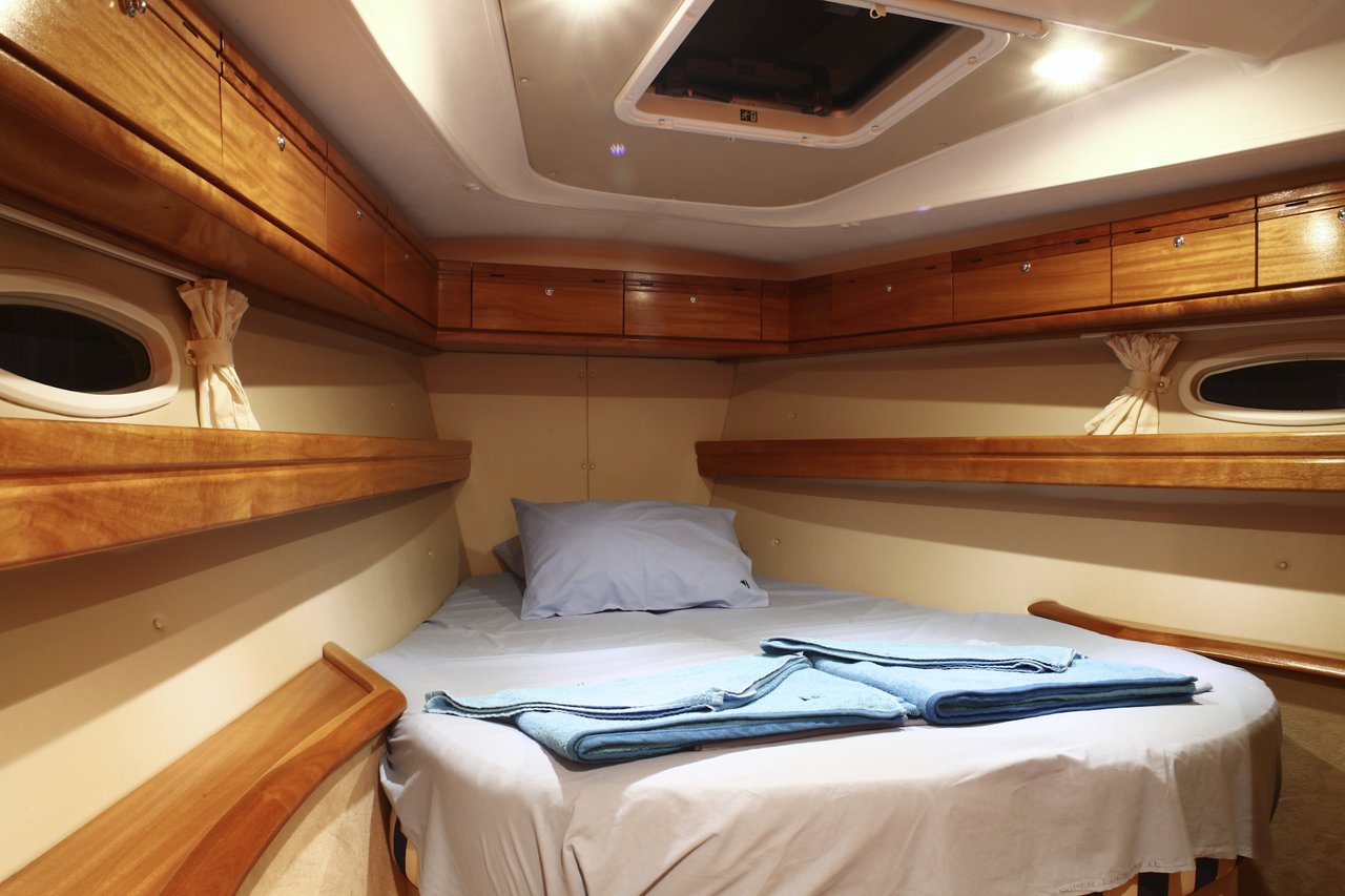 | Safety | Autopilot, Bordapotheke, Bugstrahlruder, elektr. Bilgepumpe, Feststoffschwimmwesten, Feuerlöscher, Notpinne, Notsignale, Radarreflektor, Rettungsinsel, UKW-Funk m. DSC |