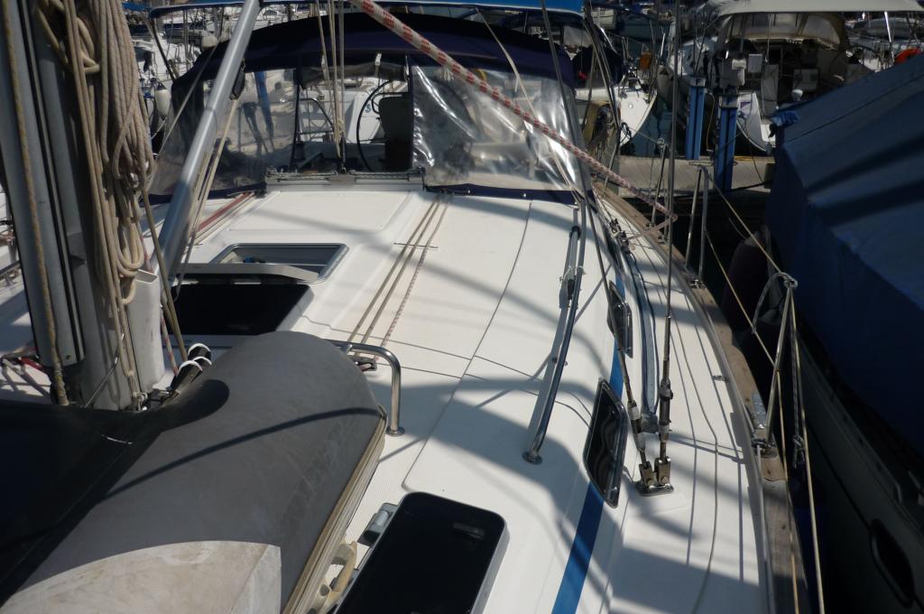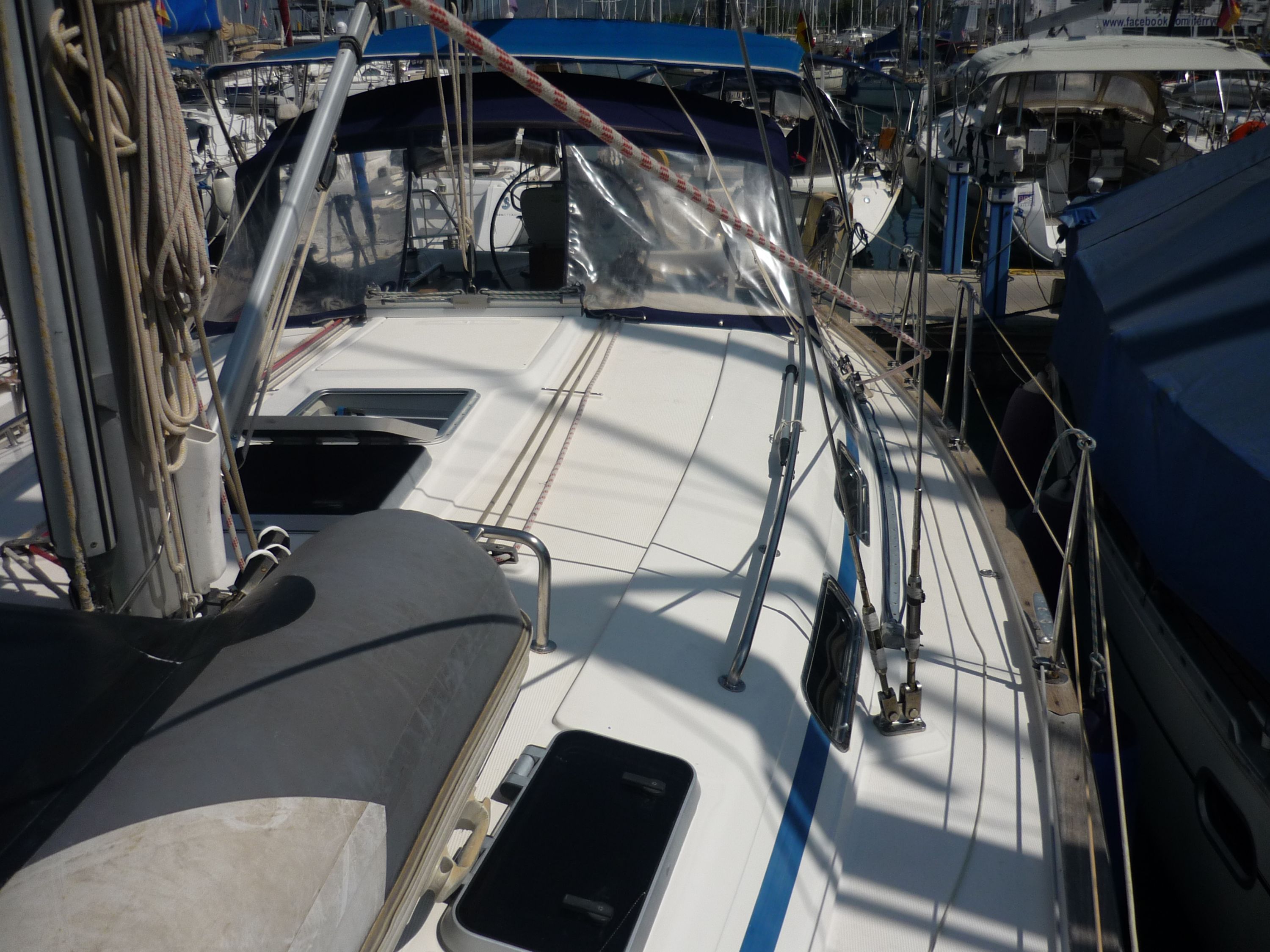 | Outside | 220 V-Landanschluss, Anker mit Kette, Biminitop, Cockpitdusche, Cockpitlautsprecher, Cockpitpolster, Cockpittisch, elektr. Ankerwinsch, Fender, Fernsteuerung für elektr. Ankerwinsch, Gangway, Sprayhood, Teak im Cockpit, Windex |