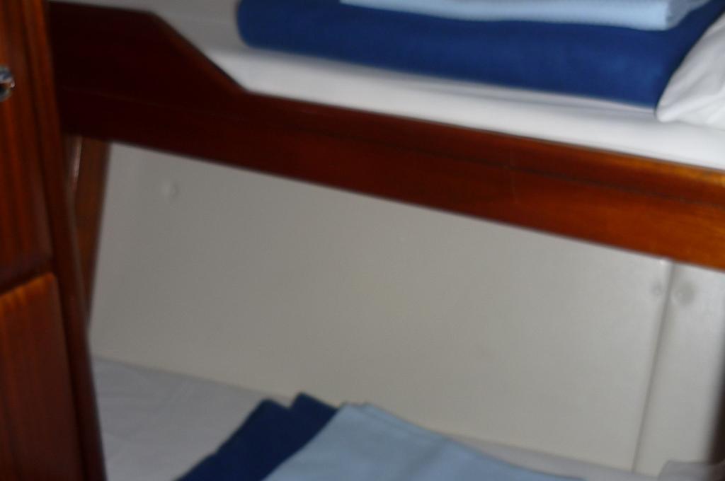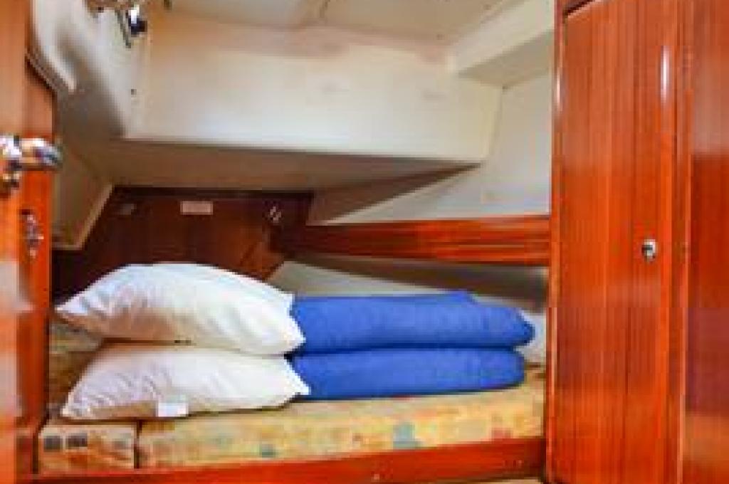 | Safety | Autopilot, Blitzboje, Bordapotheke, elektr. Bilgepumpe, Feststoffschwimmwesten, Feuerlöscher, Lifebelts, Löschdecke, Notpinne, Notsignale, Rettungsinsel, Suchscheinwerfer, Taschenlampe, UKW-Funk, Zweitanker |