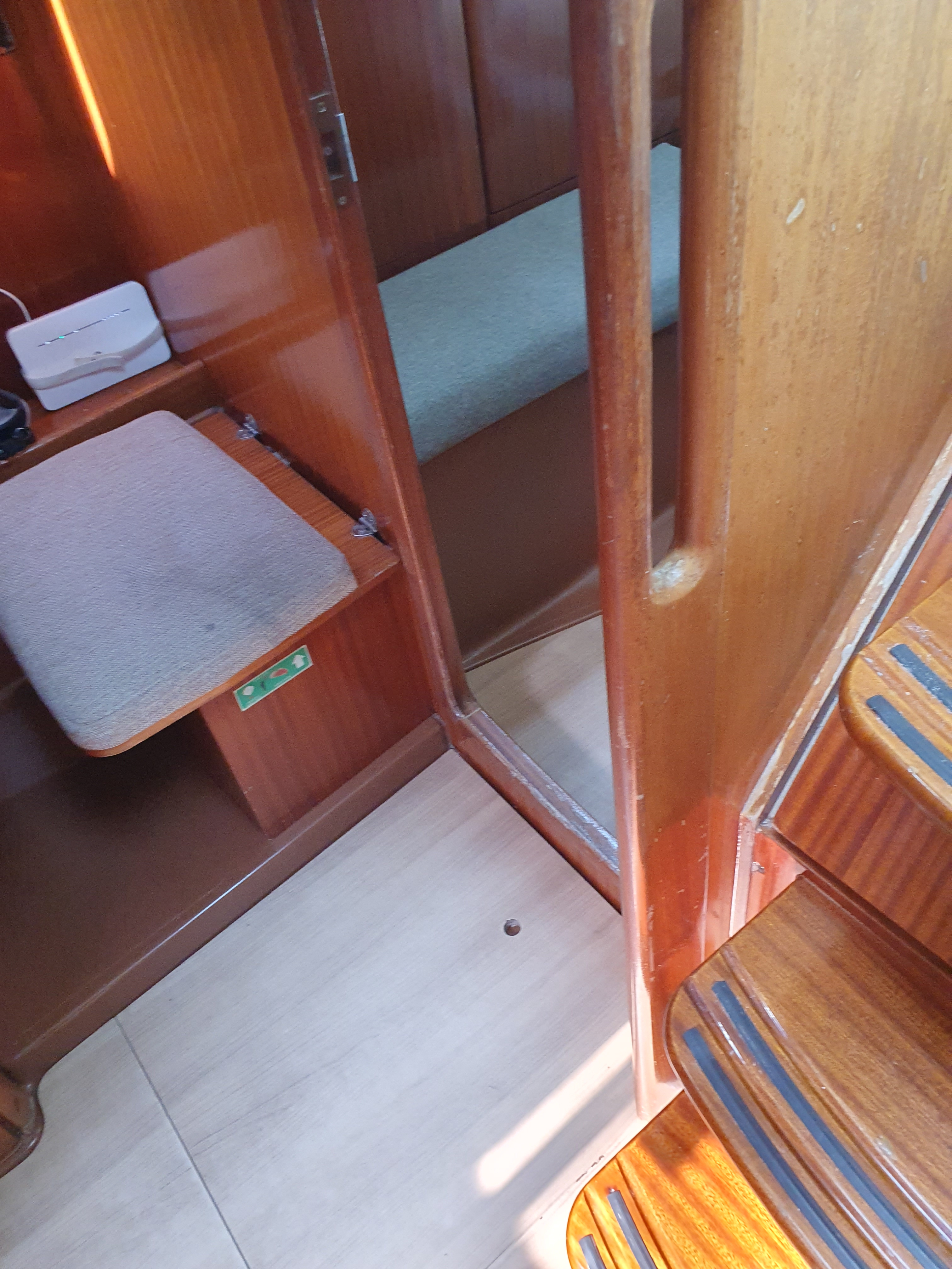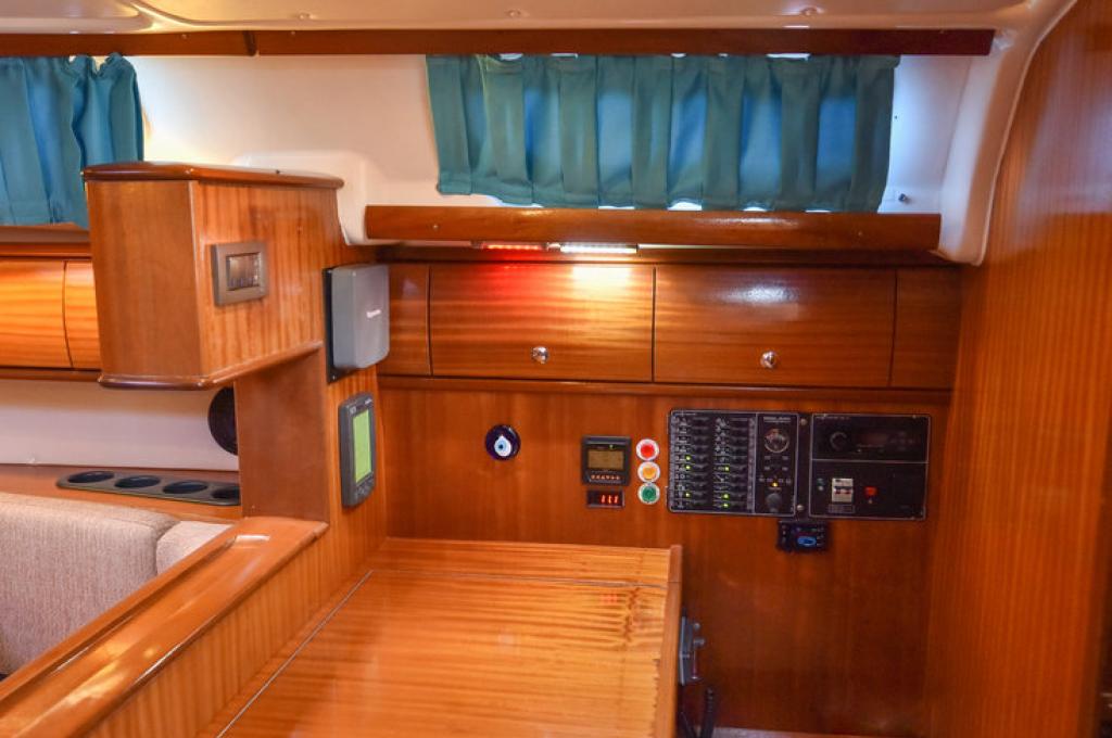 | Navigation | Echolot, Fernglas, GPS mit Kartenplotter im Cockpit, Handpeilkompass, Kompass, Navigationsbesteck, Seekarten, Tridata (Log, Echolot, Windm.), Windmesser |
