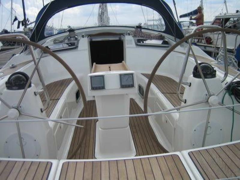 | Outside | Biminitop, Bootshaken, Cockpitdusche, Cockpitpolster, elektr. Ankerwinsch, Fender, Lifeline System, Rodkicker, Schnorchelausrüstung, Sprayhood, Teak im Cockpit |