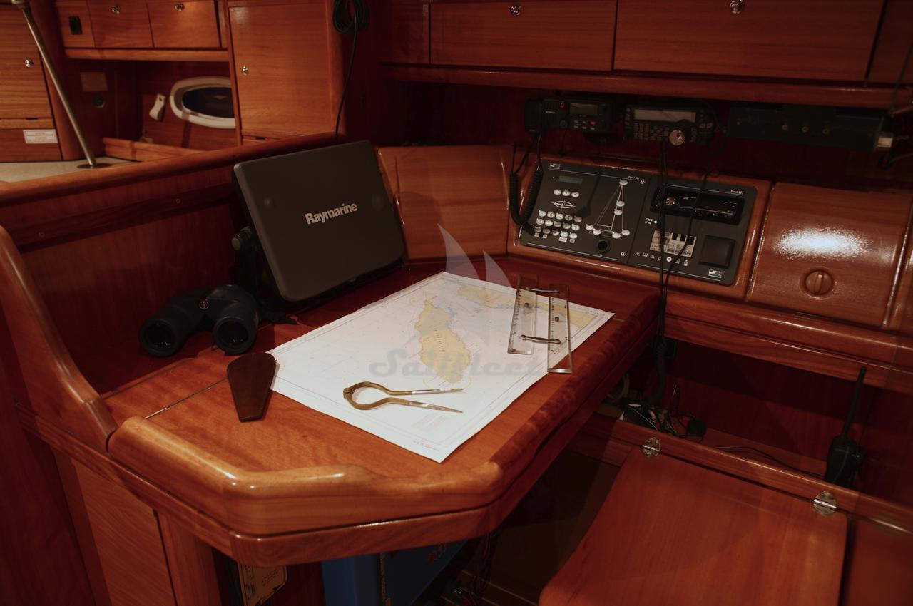 | Navigation | GPS mit Kartenplotter im Cockpit, Kompass, Radar, Seekarten, Tridata (Log, Echolot, Windm.), Windmesser |