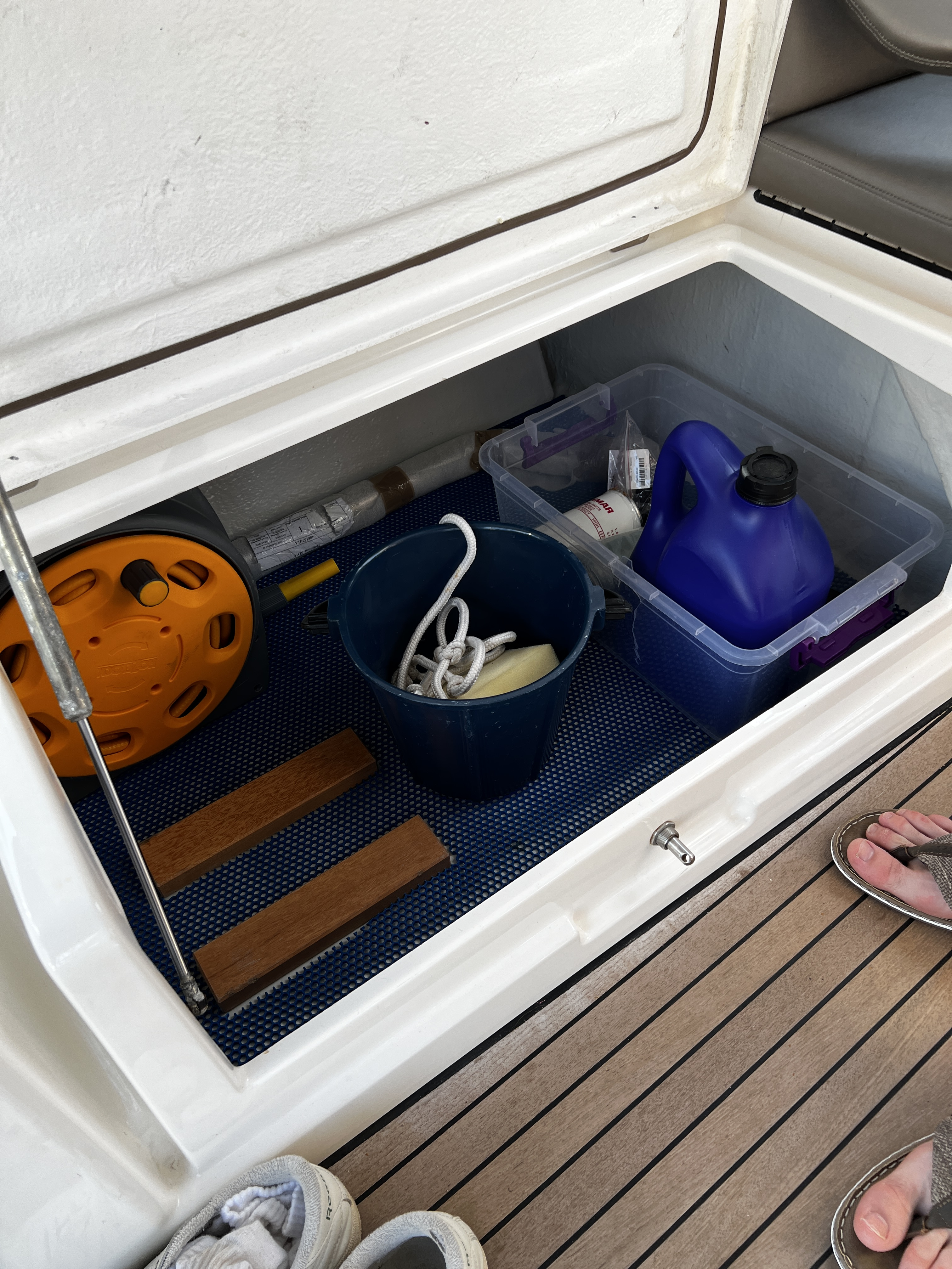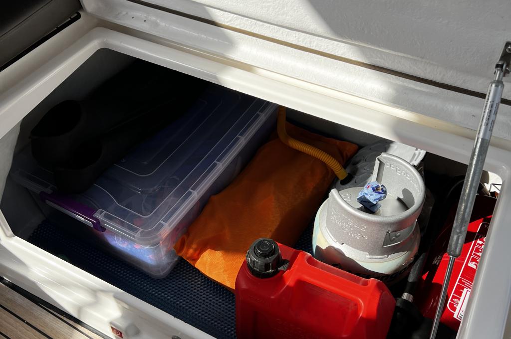 | Safety | Automatikwesten, Autopilot, Bootsmannstuhl, Bordapotheke, Bordwerkzeug, Bugstrahlruder, Feuerlöscher, Löschdecke, Nebelhorn, Notpinne, Radarreflektor, Rettungsinsel, Rettungswesten, UKW-Funk |