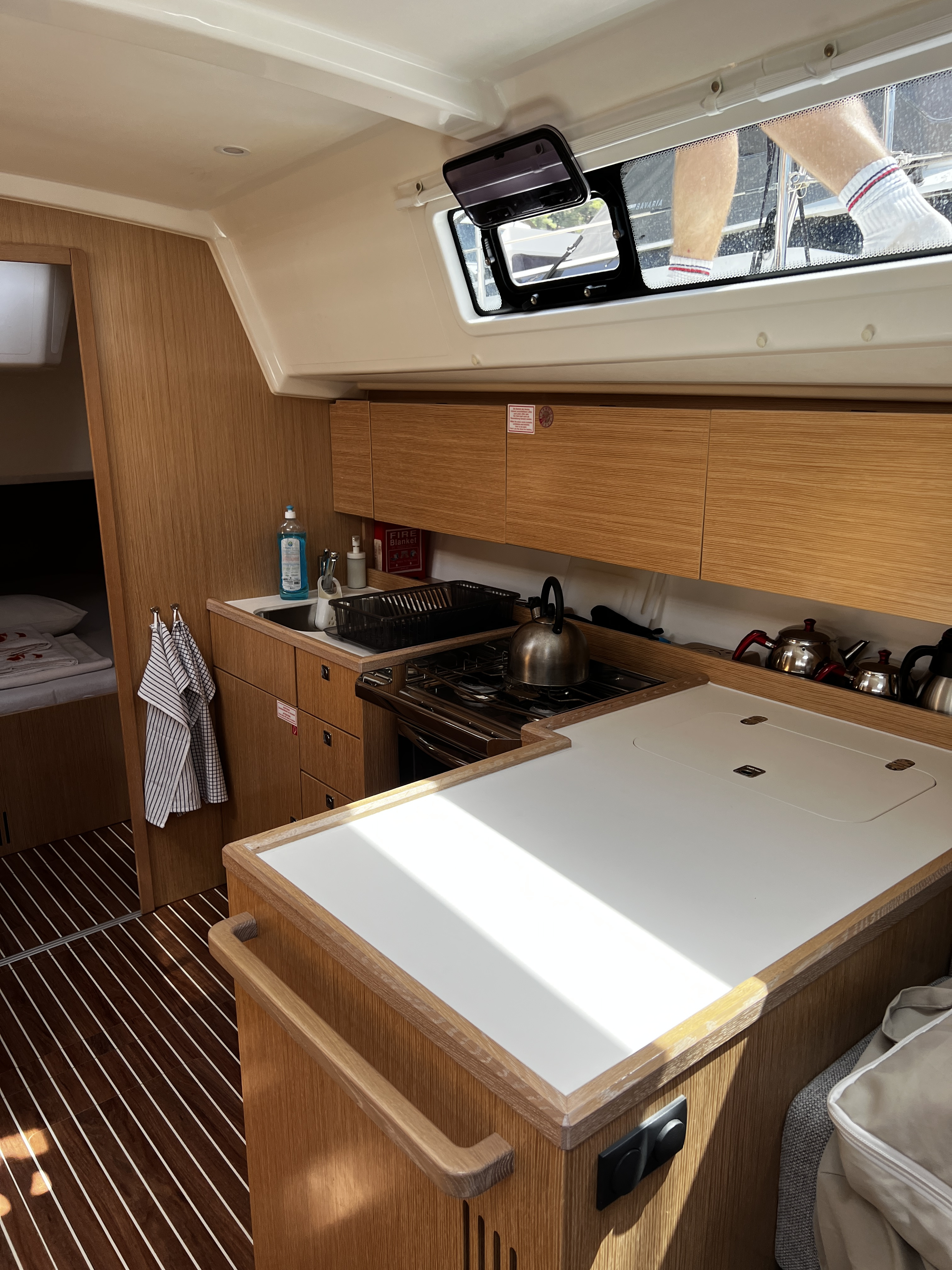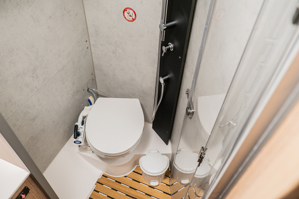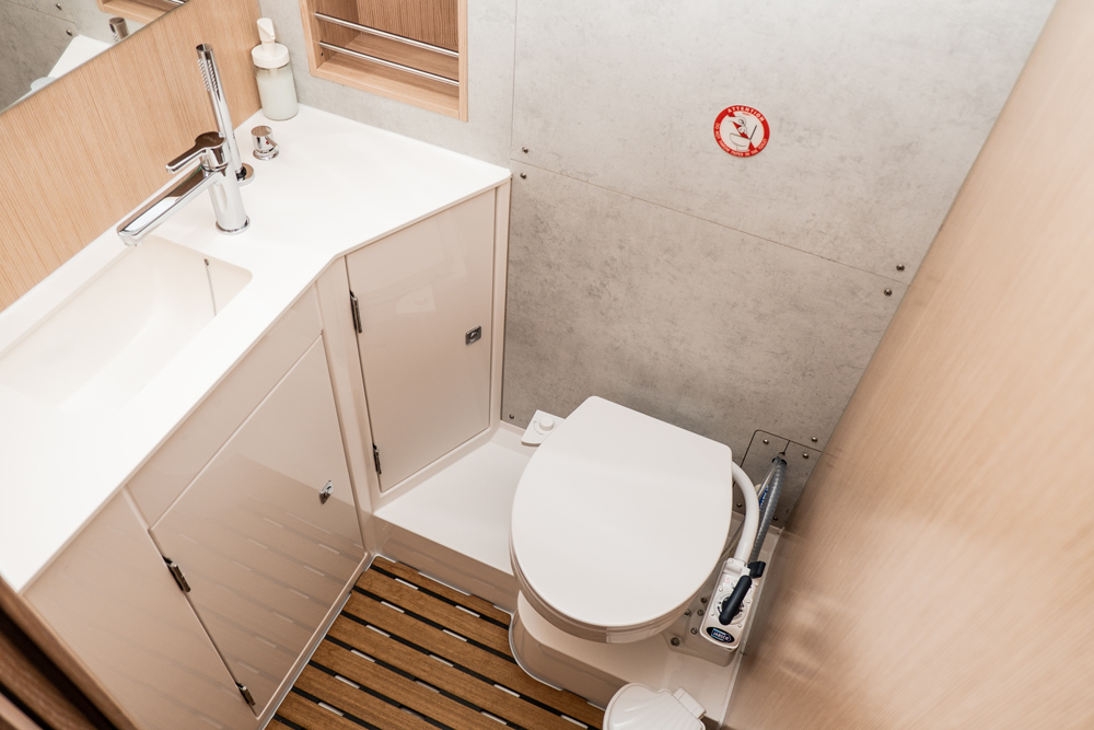 | Inside | Backofen, Flexschott, Gasherd, Inverter 12V/220V, Kühlschrank, LED-Innenleuchten, Pantryausstattung, USB Steckdose, USB-Ladegerät für Mobilgeräte, Ventilatoren in Kabinen, Warmwasser |