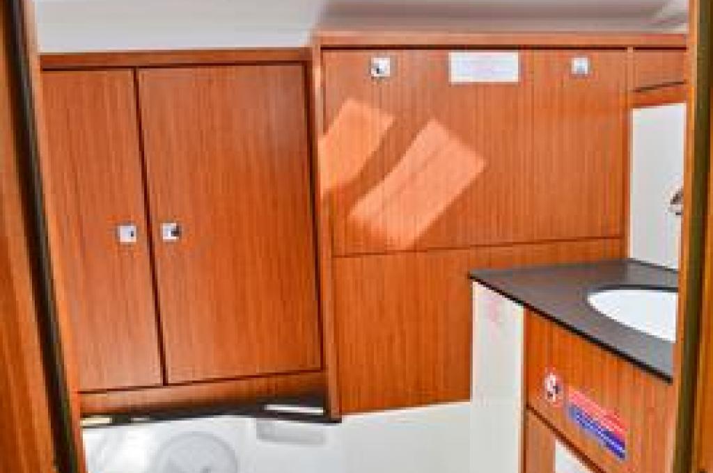 | Outside | 220 V-Landanschluss, Anker mit Kette, Badeplattform, Biminitop, Cockpitdusche, Cockpitlautsprecher, Cockpitpolster, Cockpittisch, elektr. Ankerwinsch, Fender, Fernsteuerung für elektr. Ankerwinsch, Gangway, Sprayhood, Teak im Cockpit, Windex |