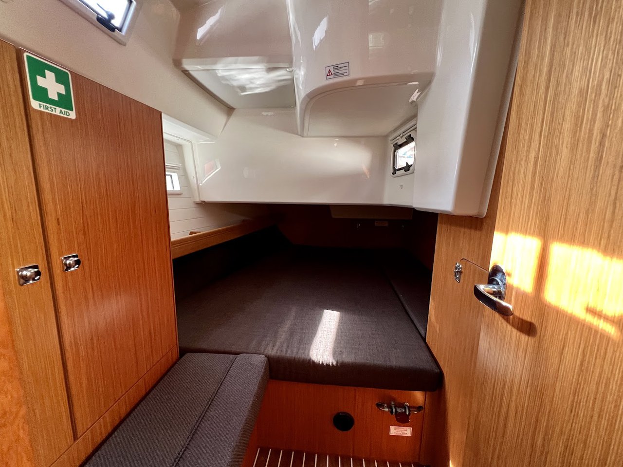 | Safety | AIS Empfänger, Autopilot, Bordapotheke, Bugstrahlruder, elektr. Bilgepumpe, Feuerlöscher, Handbilgepumpe, Notpinne, Notsignale, Radarreflektor, Rettungsinsel, Rettungswesten, Sicherheitsausrüstung, UKW-Funk, UKW-Funk m. DSC, Ultra Anker, Zweitanker |
