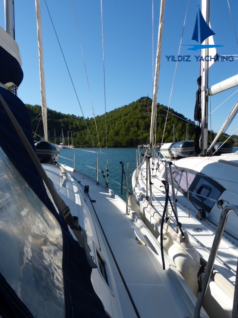 Outside Anker mit Kette, Badeleiter, Biminitop, Cockpitdusche, Cockpitlautsprecher, Cockpitpolster, Cockpittisch, elektr. Ankerwinsch, Fender, Gangway, Solaranlage, Sonnensegel, Sprayhood