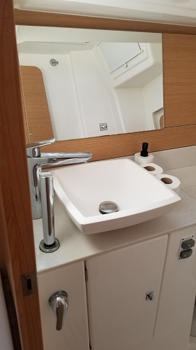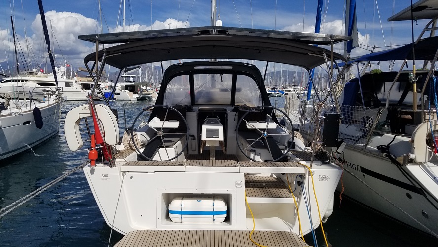 | Outside | Anker mit Kette, Badeplattform, Biminitop, Cockpitdusche, Cockpitpolster, elektr. Ankerwinsch, Gangway, Solaranlage, Sprayhood, Teak im Cockpit |