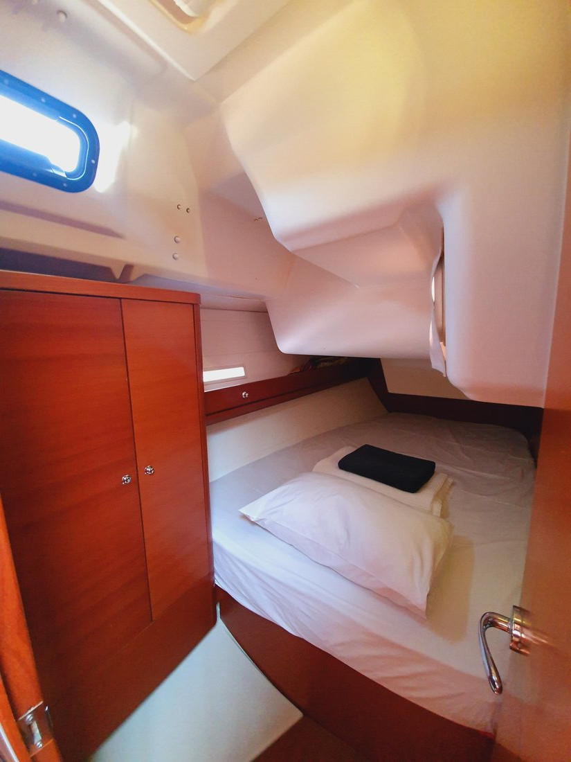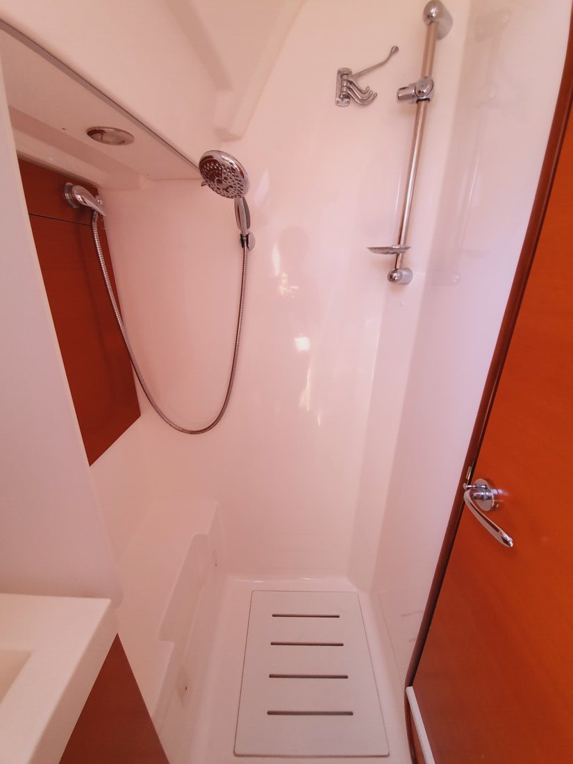 | Outside | Anker mit Kette, Ankerkettenzähler, Biminitop, Bootshaken, Cockpitlautsprecher, Cockpitleuchte, Cockpitpolster, elektr. Ankerwinsch, elektr. Winsch, Fender, Festmacherleinen, Kugelfender, Solaranlage, Sprayhood, Teakdeck, Wantenschneider |