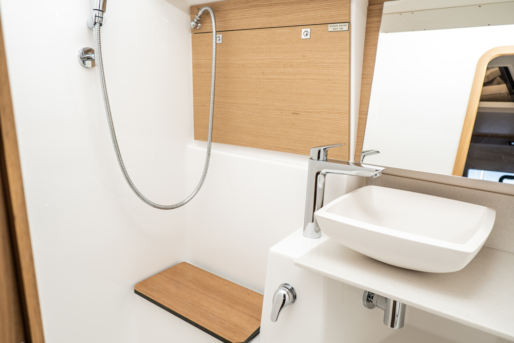 | Inside | Backofen, Gasherd, Heizung, Inverter 12V/220V, Kühlschrank, Landstromkabel, LED-Innenleuchten, Lukenjalousien, Pantryausstattung, Spülbecken, USB Steckdose, Ventilatoren in Kabinen, Wasserkocher |