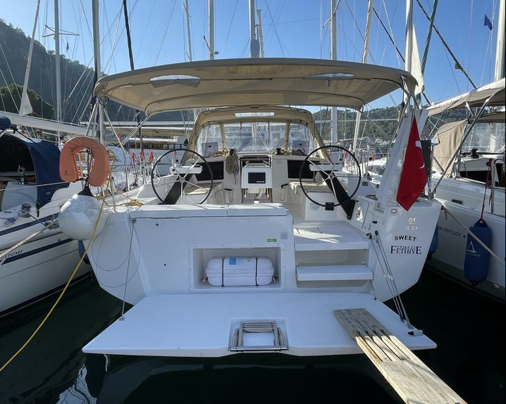 | Safety | Automatikwesten, Autopilot, Bordapotheke, Bugstrahlruder, elektr. Bilgepumpe, Feuerlöscher, Flaggen, Handbilgepumpe, Kinderschwimmwesten, Löschdecke, Navtex, Nebelhorn, Notpinne, Notsignale, Radarreflektor, Rettungsinsel, Rettungskragen, Taschenlampe, UKW-Funk m. DSC, Ultra Anker, Zweitanker |
