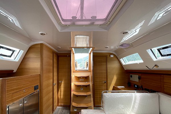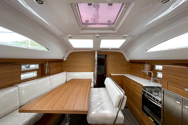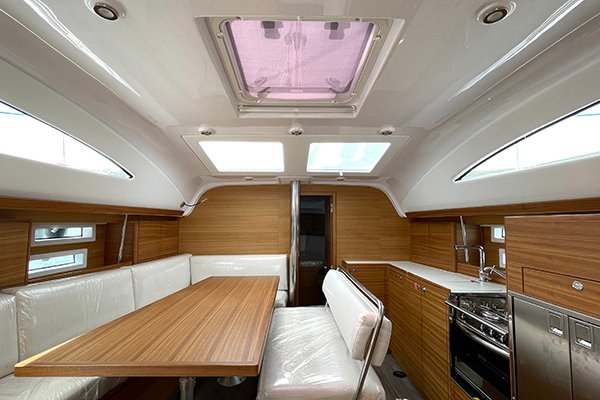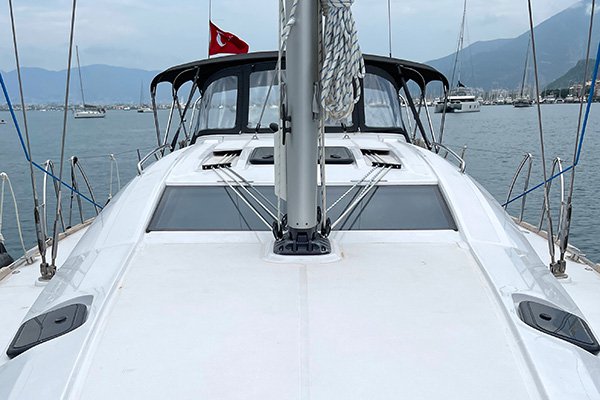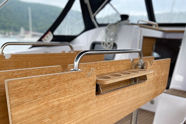 | Outside | Biminitop, Cockpittisch, Delta-Anker, elektr. Ankerwinsch, elektr. Winsch, Fender, Festmacherleinen, Sprayhood, Teak im Cockpit, Winschen |