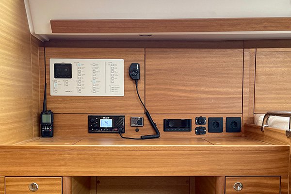 | Navigation | GPS mit Kartenplotter, Hafenhandbücher, Seekarten, Tridata (Log, Echolot, Windm.), Windmesser |