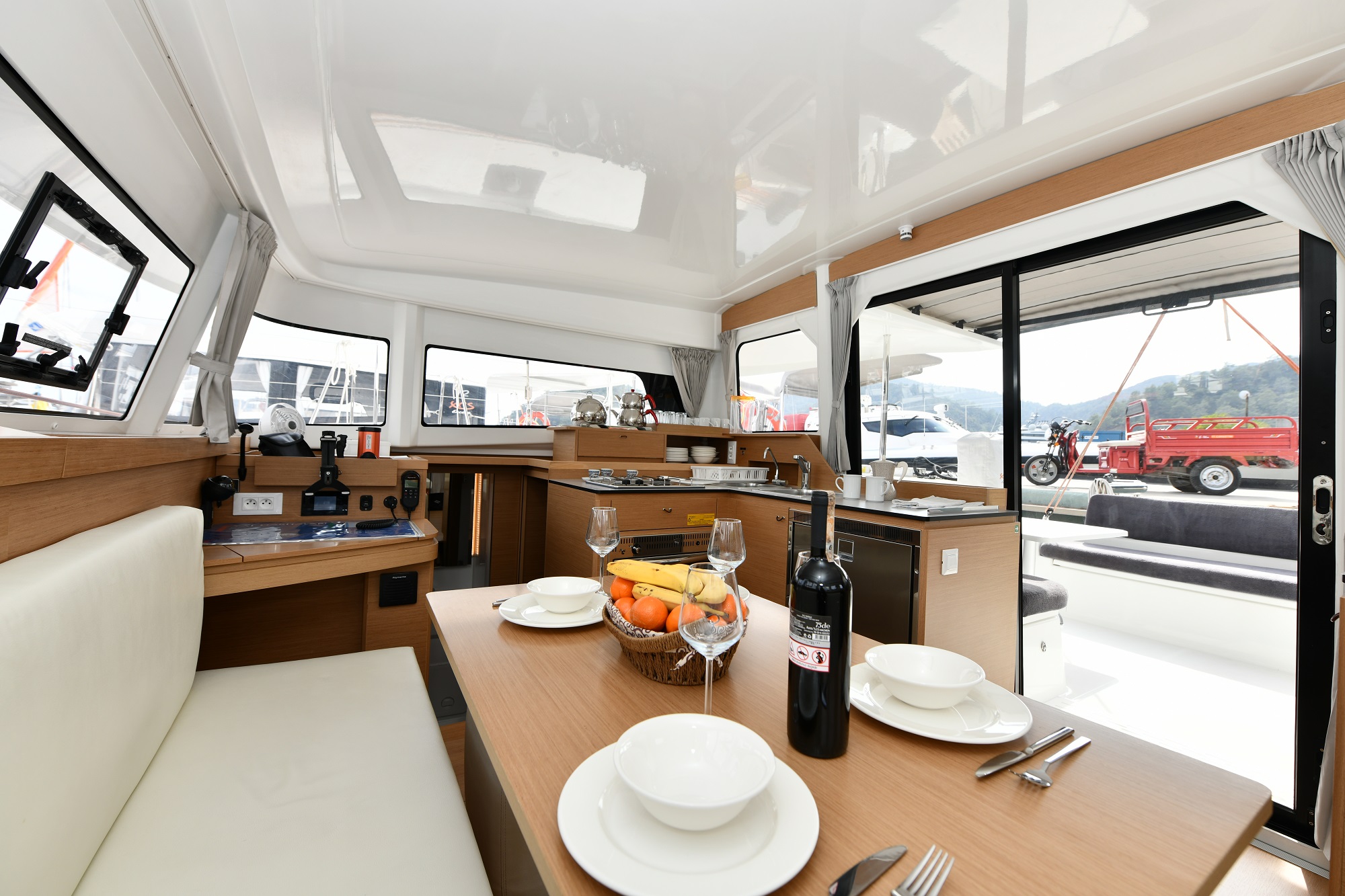 | Outside | Badeplattform, Cockpitdusche, Cockpitlautsprecher, Cockpitpolster, Cockpittisch, Davits, elektr. Großwinsch, Hardtop |
