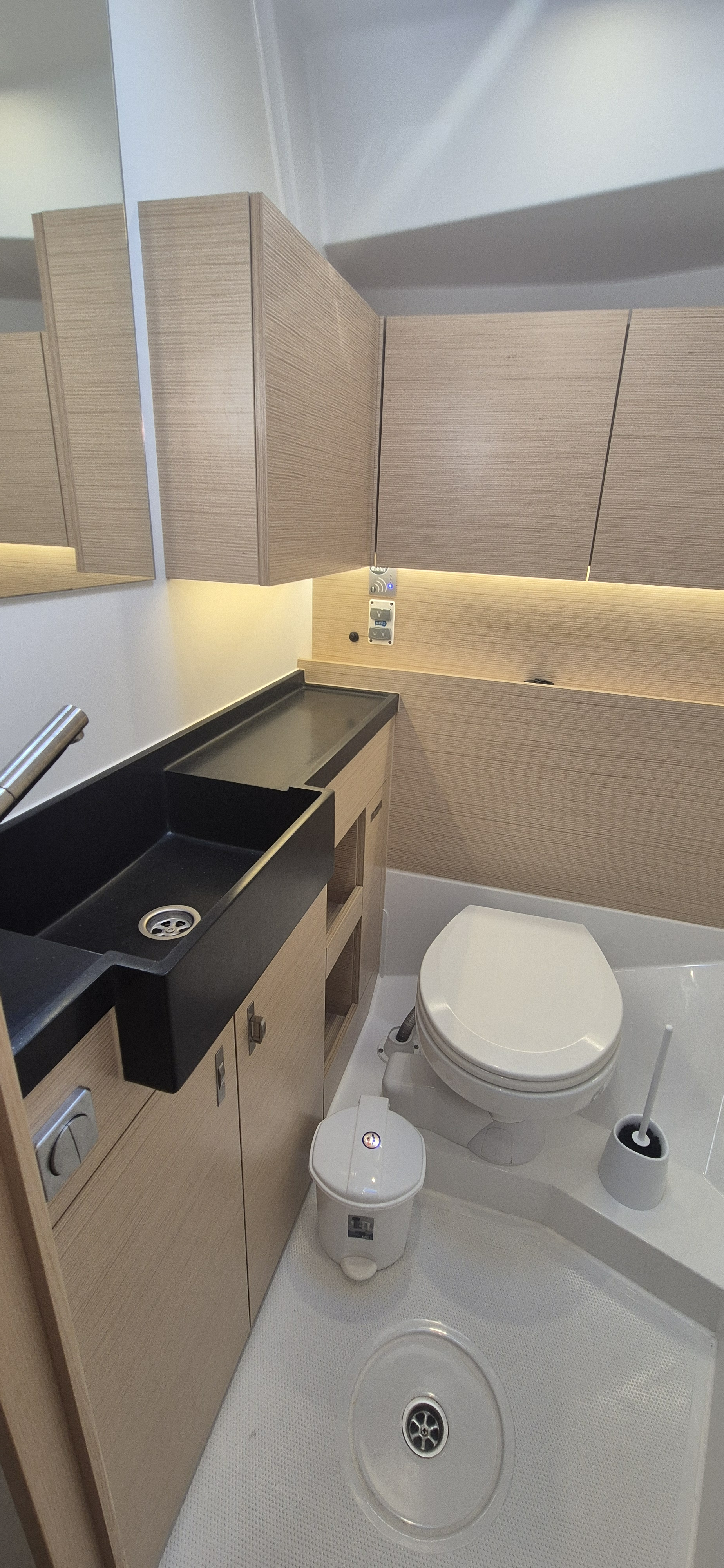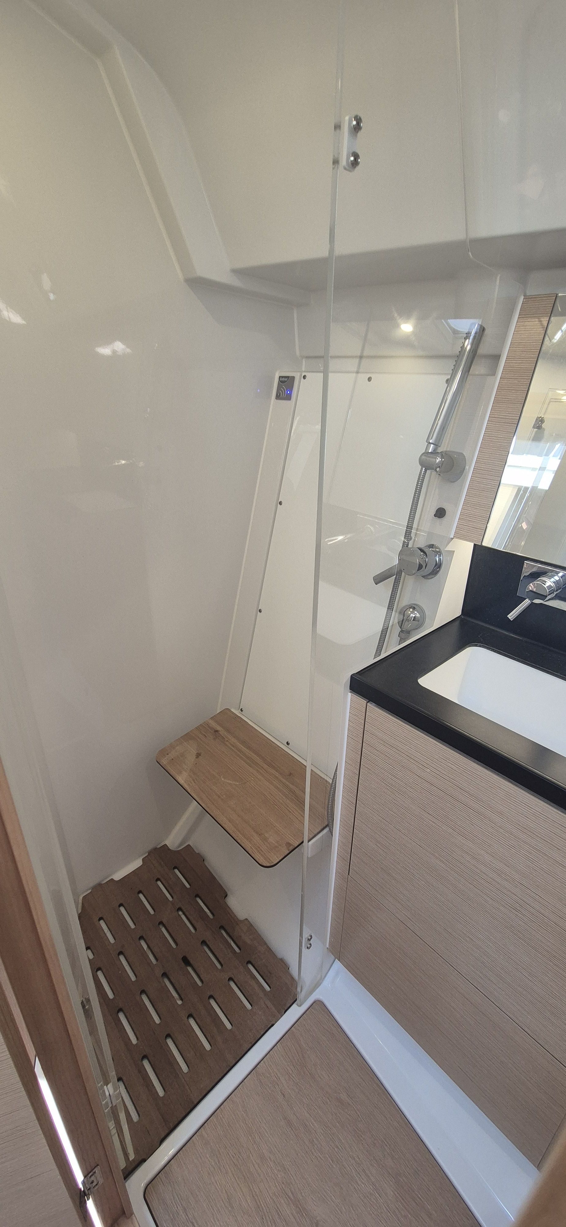 | Outside | Badeplattform, Biminitop, Cockpitdusche, Cockpitlautsprecher, Cockpitpolster, Cockpittisch, Sprayhood, Teak auf Badeplattform, Teak im Cockpit |