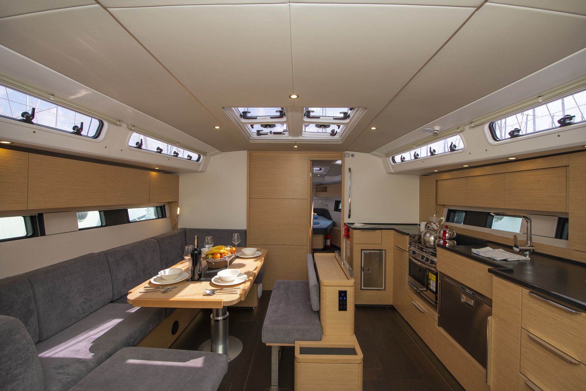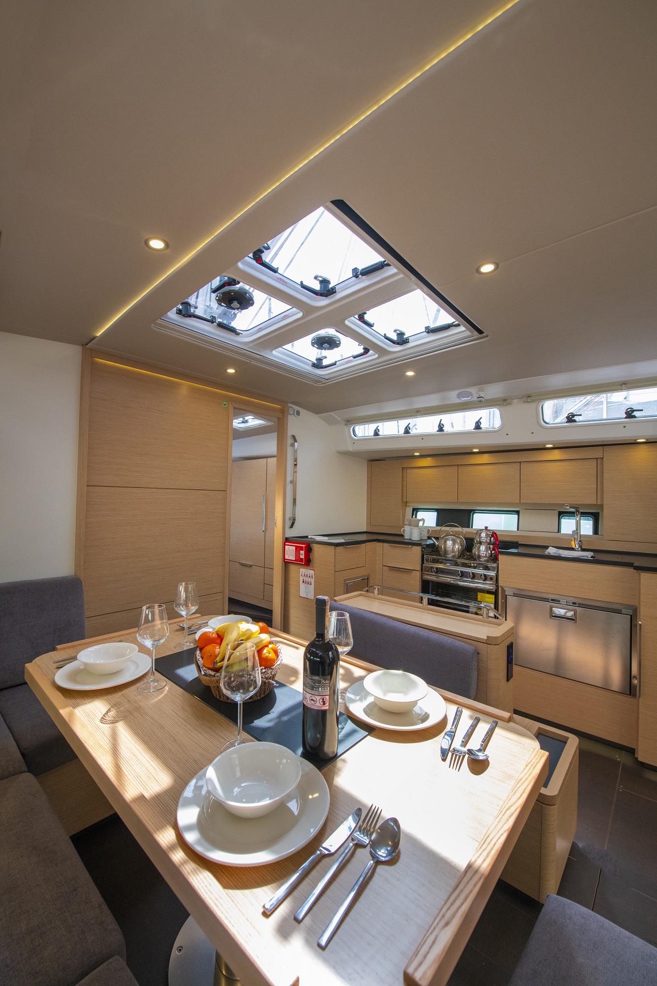 | Outside | Badeplattform, Biminitop, Cockpitdusche, Cockpitlautsprecher, Cockpittisch, elektr. Ankerwinsch, Sprayhood, Teak im Cockpit |