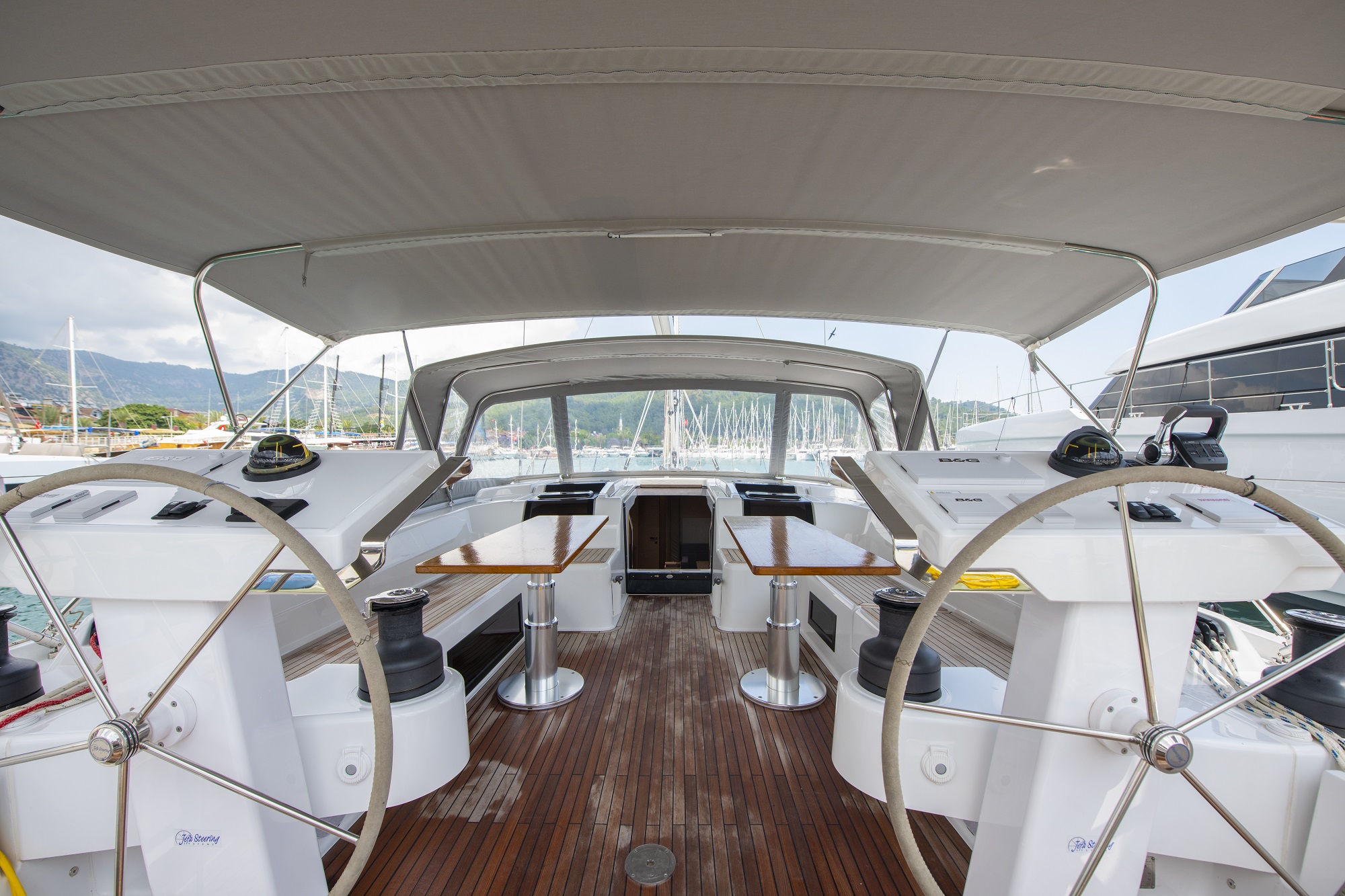 | Outside | Badeplattform, Biminitop, Cockpitlautsprecher, Cockpittisch, Sprayhood, Teak im Cockpit |