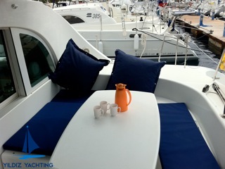 | Outside | Anker mit Kette, Badeleiter, Biminitop, Cockpitdusche, Cockpitlautsprecher, Cockpitpolster, Cockpittisch, Davits, elektr. Ankerwinsch, Fender, Gangway, Solaranlage, Sprayhood |