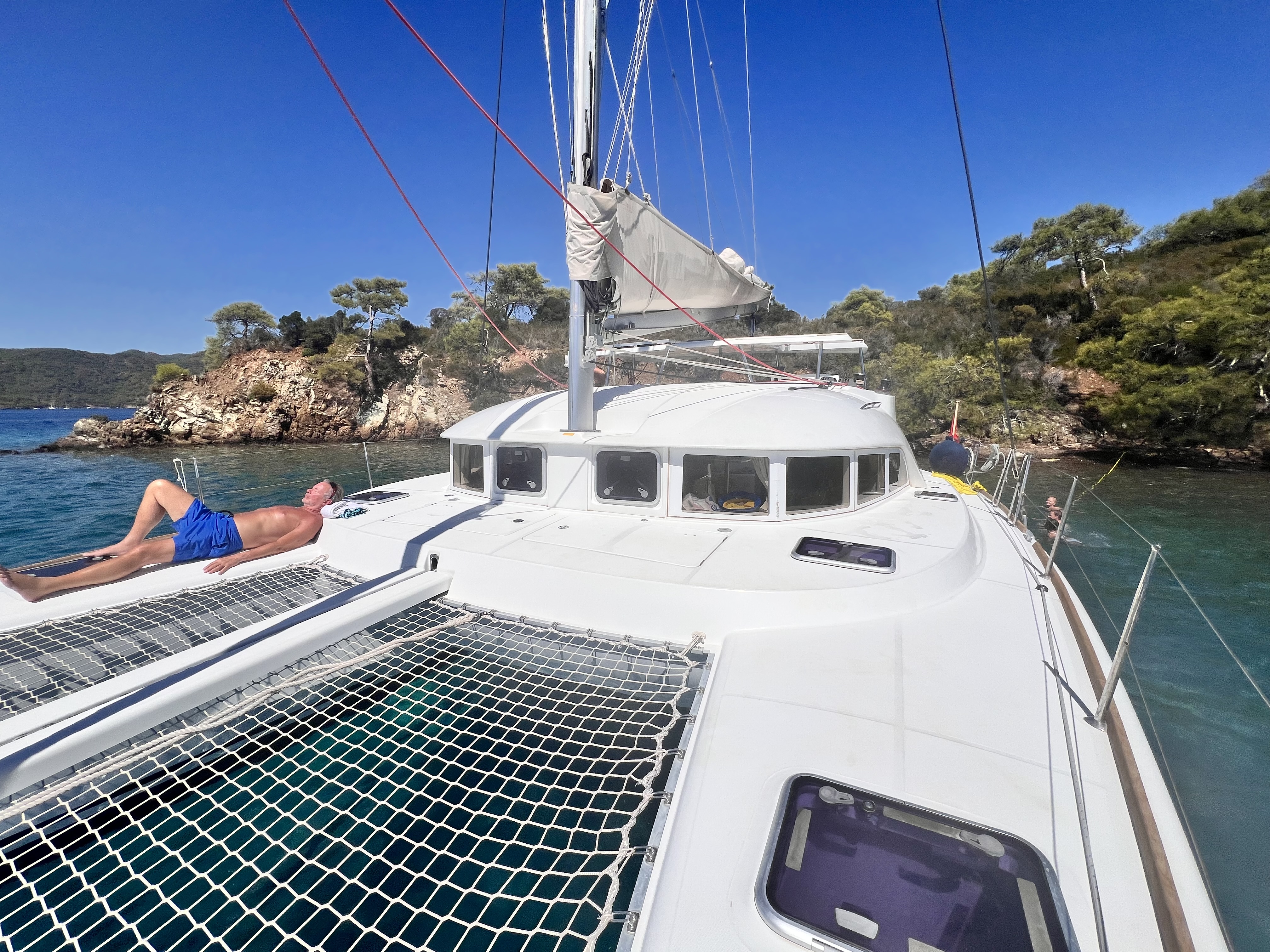 | Outside | Anker mit Kette, Badeleiter, Biminitop, Cockpitdusche, Cockpittisch, elektr. Ankerwinsch, Gangway, Sprayhood |